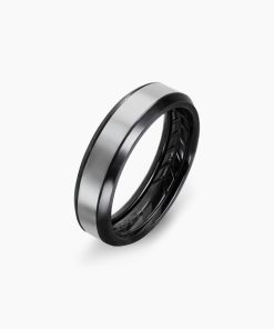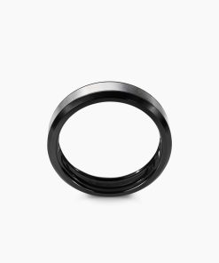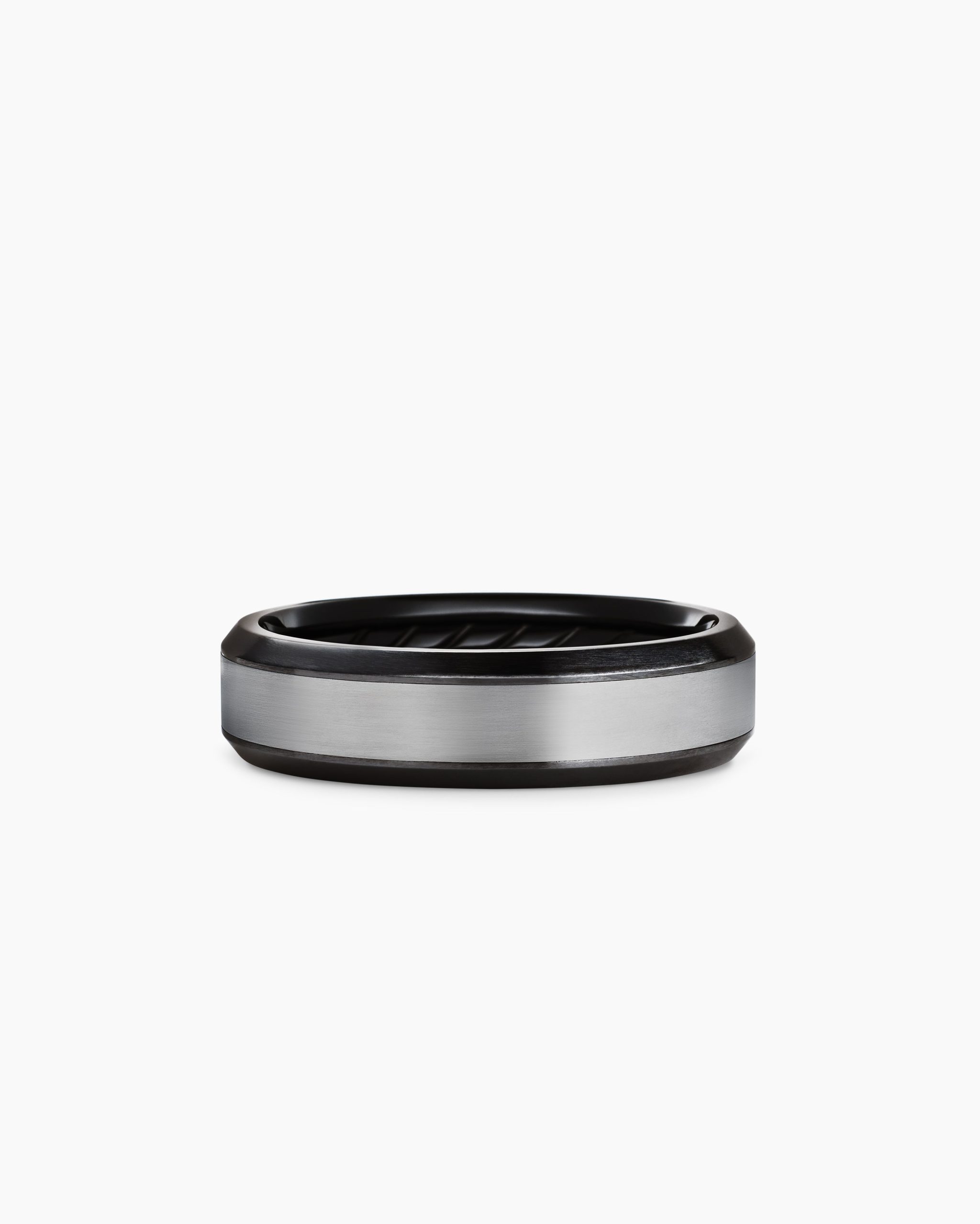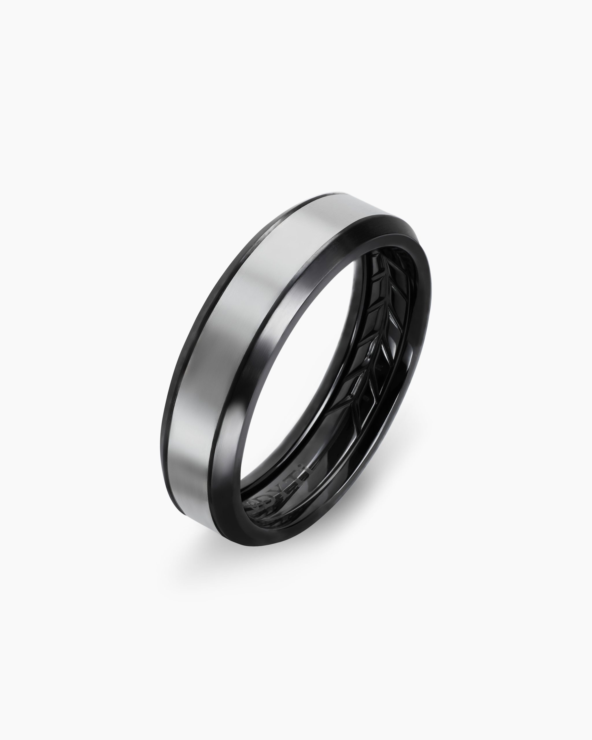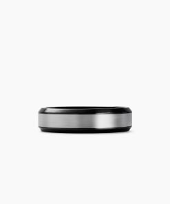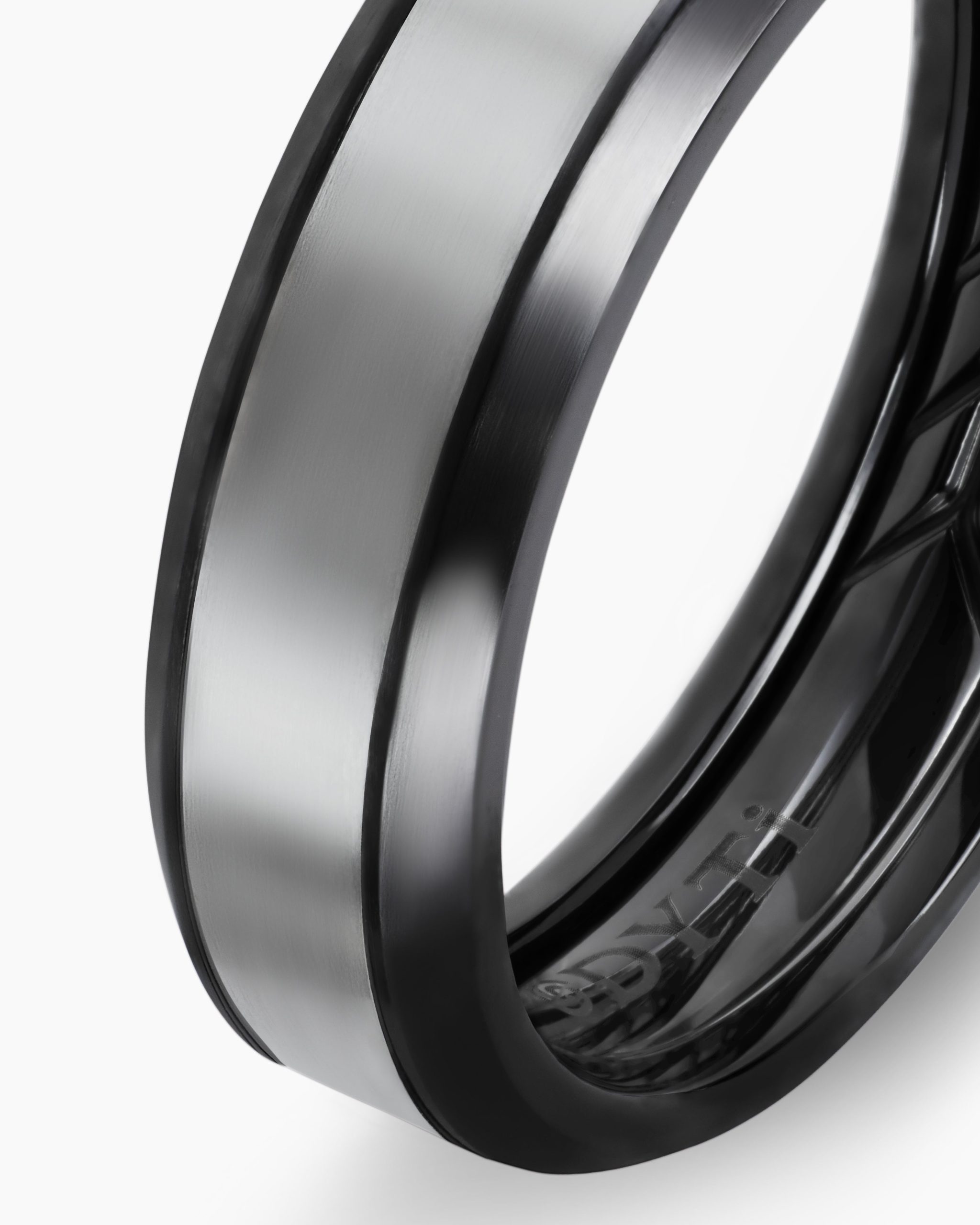 This hand-finished piece is inspired by beveled edges. Black titanium with grey titaniumRing, 6mm