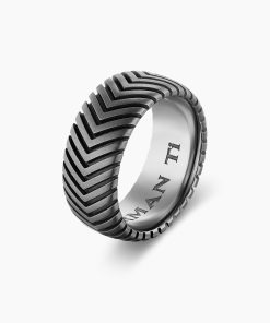 Marked by its double-helix pattern, Chevron is a mirror image of Cable, the house’s signature motif. The ancient V-shaped design offers a sense of modern sophistication, expertly crafted in refined materials, with deep cuts, precise angles, and a play of light and dark to evoke a feeling of forward momentum in the pursuit of excellence. Its elevated look fuses luxury and practicality for everyday wear, imbuing an essence of timelessness and versatility.TitaniumRing, 10mm