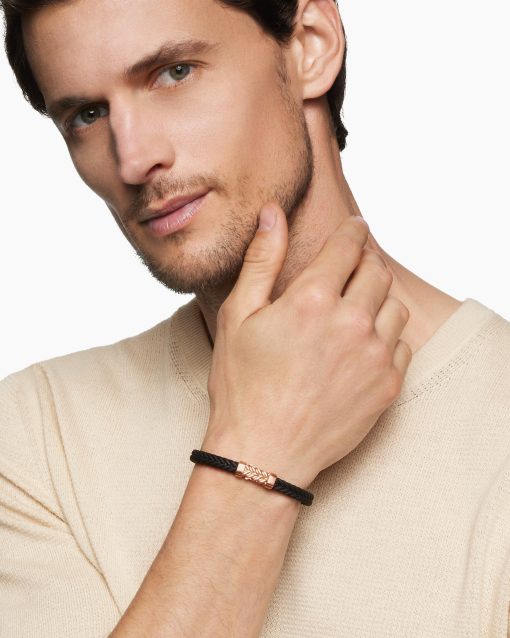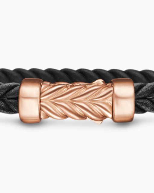 Marked by its double-helix pattern, Chevron is a mirror image of Cable, the house’s signature motif. The ancient V-shaped design offers a sense of modern sophistication, expertly crafted in refined materials, with deep cuts, precise angles, and a play of light and dark to evoke a feeling of forward momentum in the pursuit of excellence. Its elevated look fuses luxury and practicality for everyday wear, imbuing an essence of timelessness and versatility.18-karat rose goldBlack rubberBracelet, 6mmChevron station, 22.4 x 8.8mmHidden hook clasp