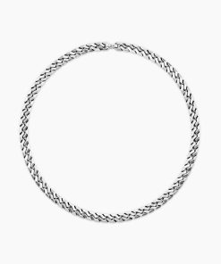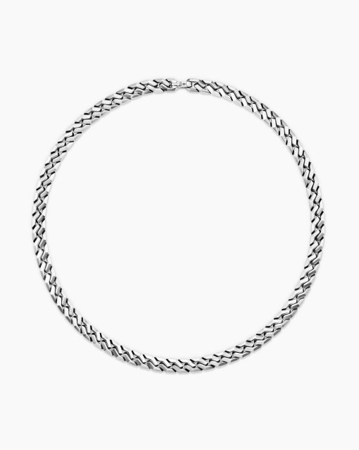 Inspired by David’s passion for horses, Curb Chain is the most elevated expression of our signature chain links. Its timeless elegance is rooted in the traditional equestrian bridle tack used to create control and stability during moments of speed. Forged precious metal is carved into Cable-like S-curves, each link crafted with impactful precision and hand-assembled with the next, culminating in a striking chain engineered for effortless movement.Sterling silverNecklace, 8.7mmPush clasp