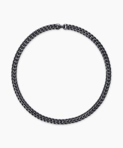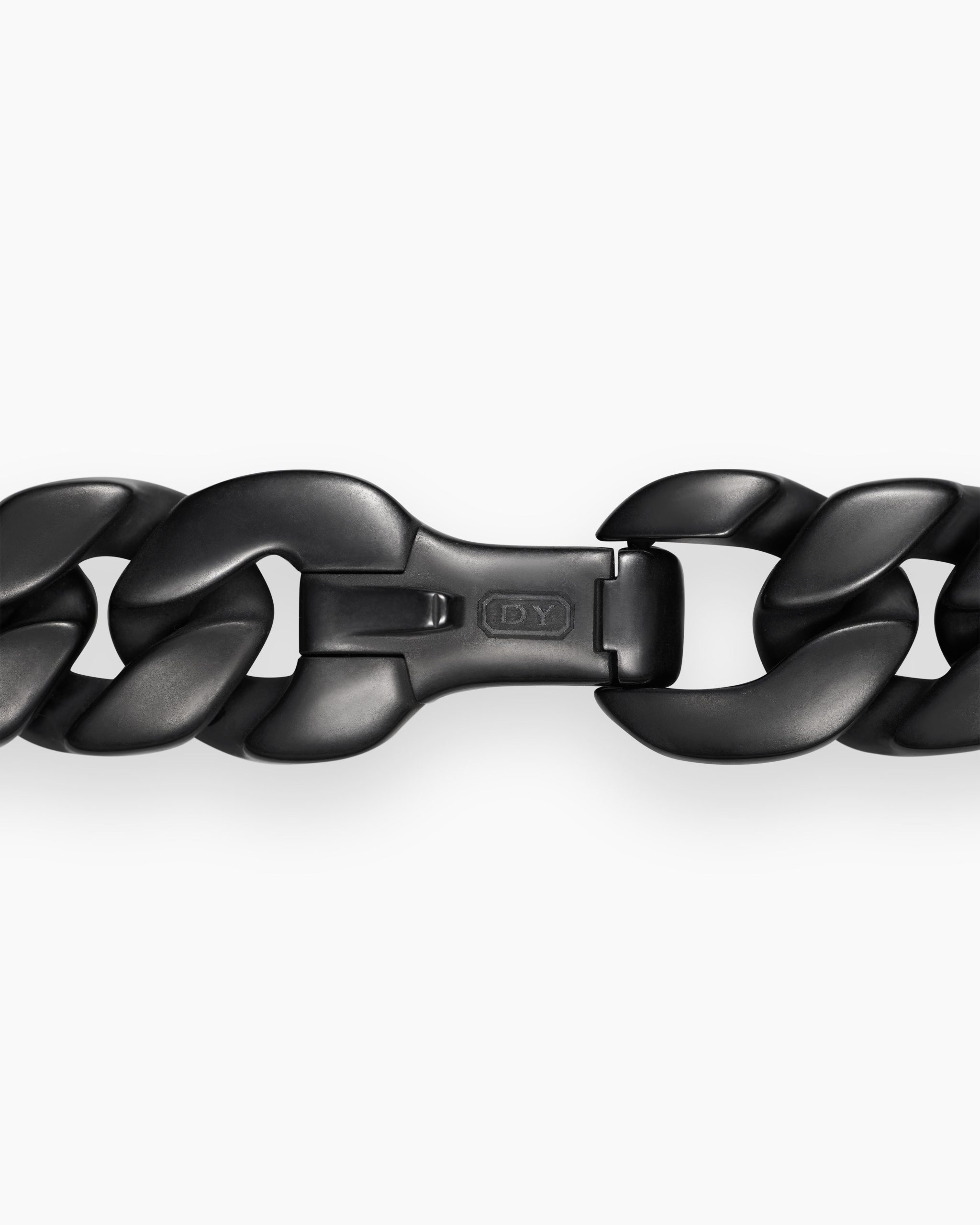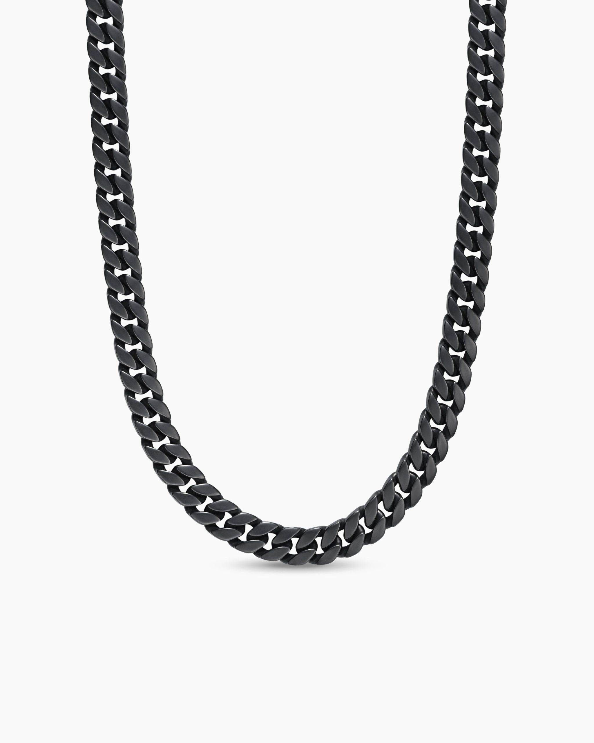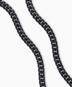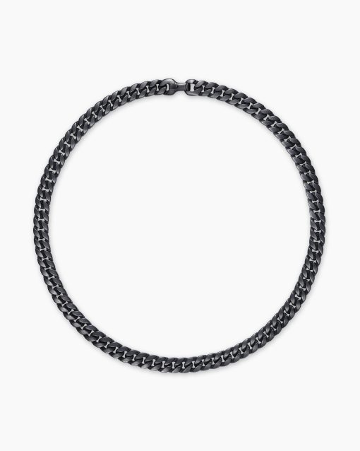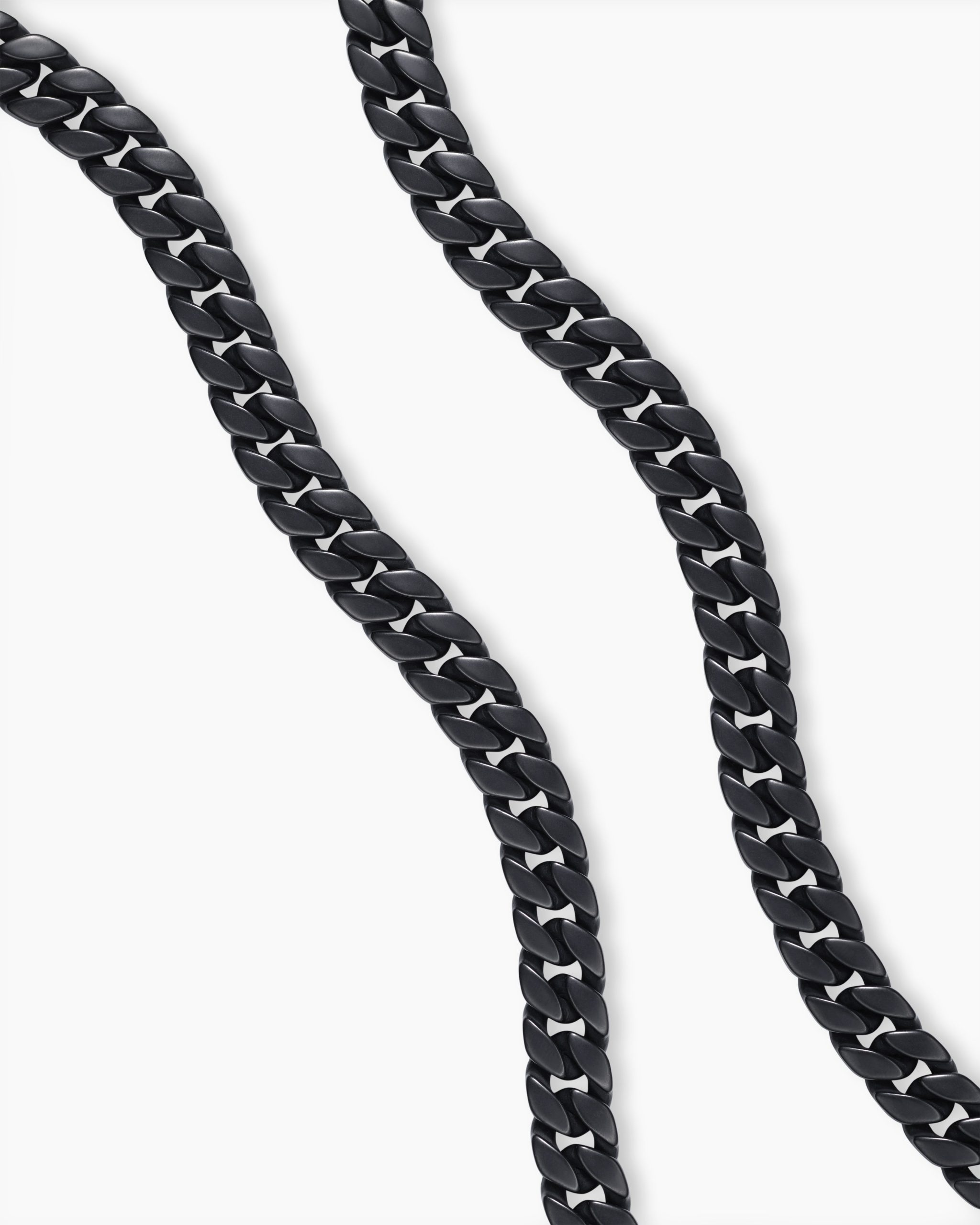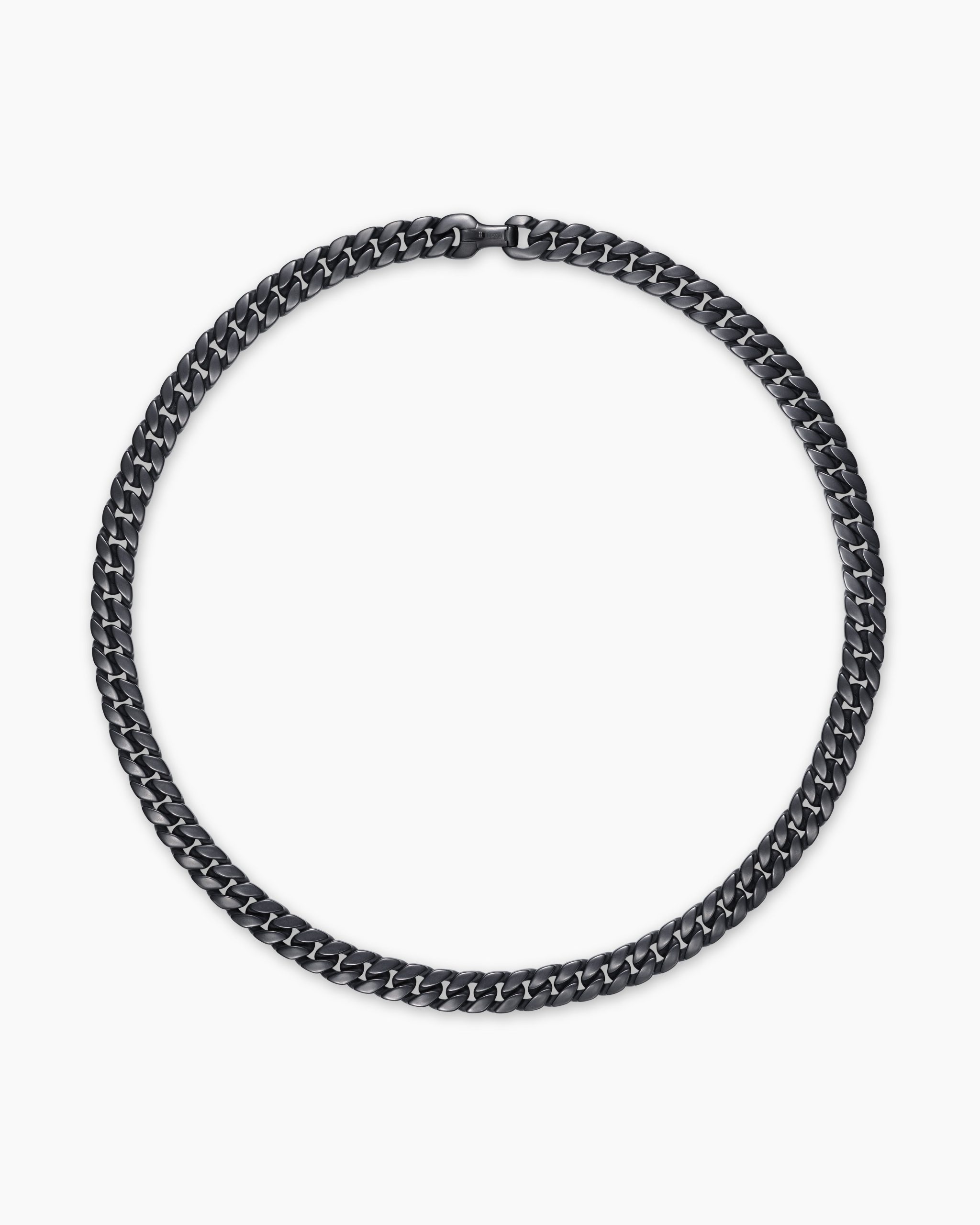 Inspired by David’s passion for horses, Curb Chain is the most elevated expression of our signature chain links. Its timeless elegance is rooted in the traditional equestrian bridle tack used to create control and stability during moments of speed. Forged precious metal is carved into Cable-like S-curves, each link crafted with impactful precision and hand-assembled with the next, culminating in a striking chain engineered for effortless movement.Black titaniumNecklace, 11.5mmPush claspThis item can be resized. Please contact customer care for more information.