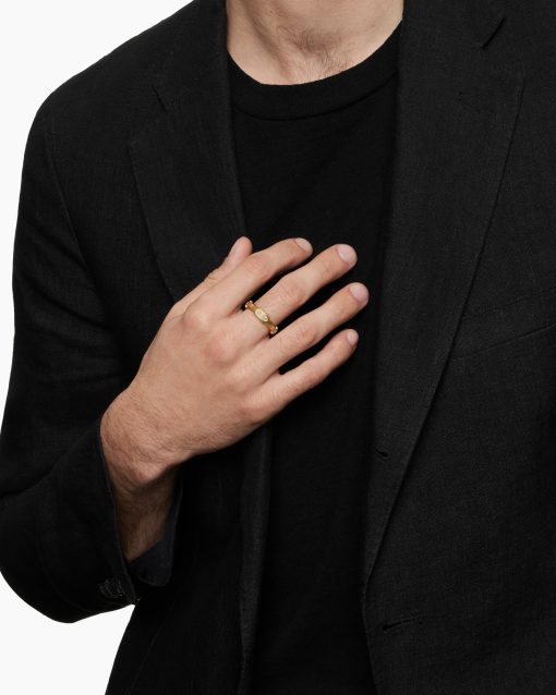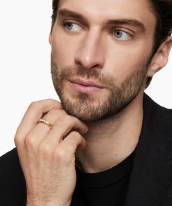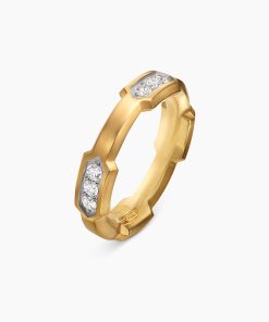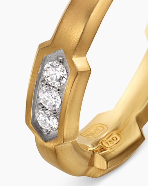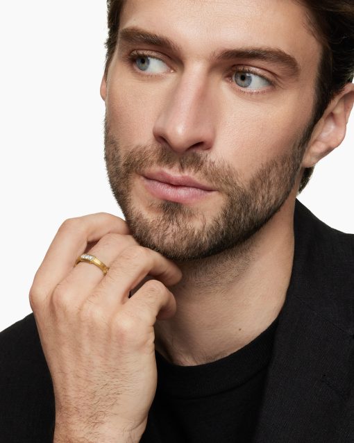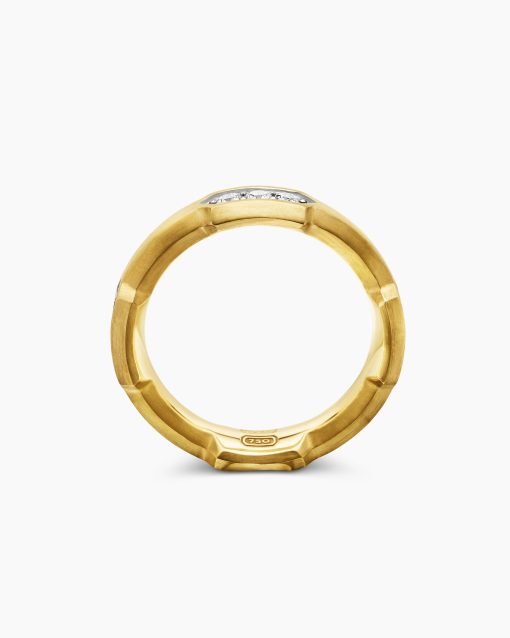 This distinctive men’s design is inspired by modern architecture. 18-karat yellow goldPavé-set diamonds, 0.69 total carat weightRing, 6mmThis item can be engraved. Please contact customer care for more information.