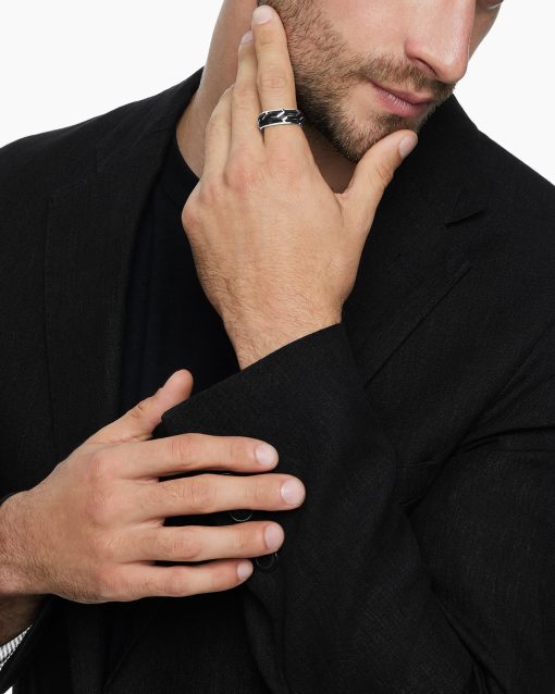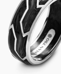 Forged carbon is a lightweight yet strong composite originally used in aeronautics and sports cars. For jewelry, David Yurman pioneered a technique which fuses the modern material and precious metal into innovative, graphic designs. 18-karat white goldForged carbonRing, 8.5mm