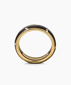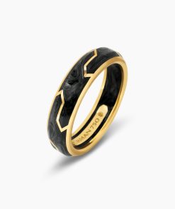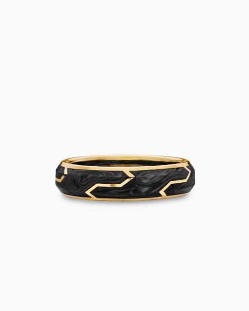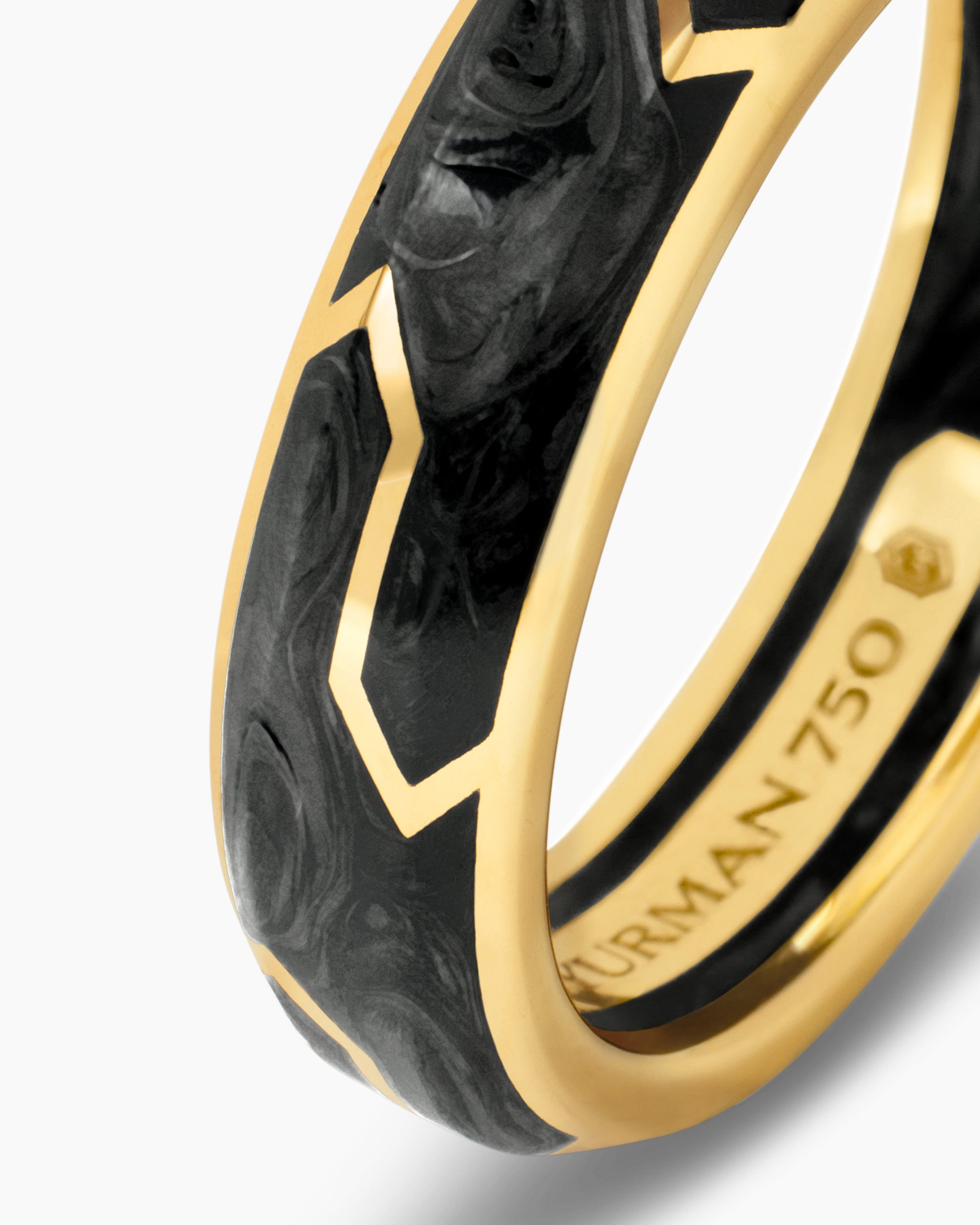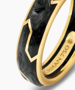 Forged carbon is a lightweight yet strong composite originally used in aeronautics and sports cars. For jewelry, David Yurman pioneered a technique which fuses the modern material and precious metal into innovative, graphic designs. 18-karat yellow goldForged carbonRing, 6mm