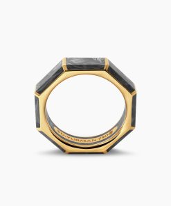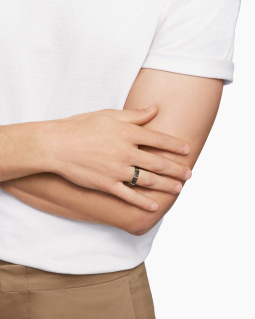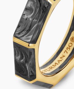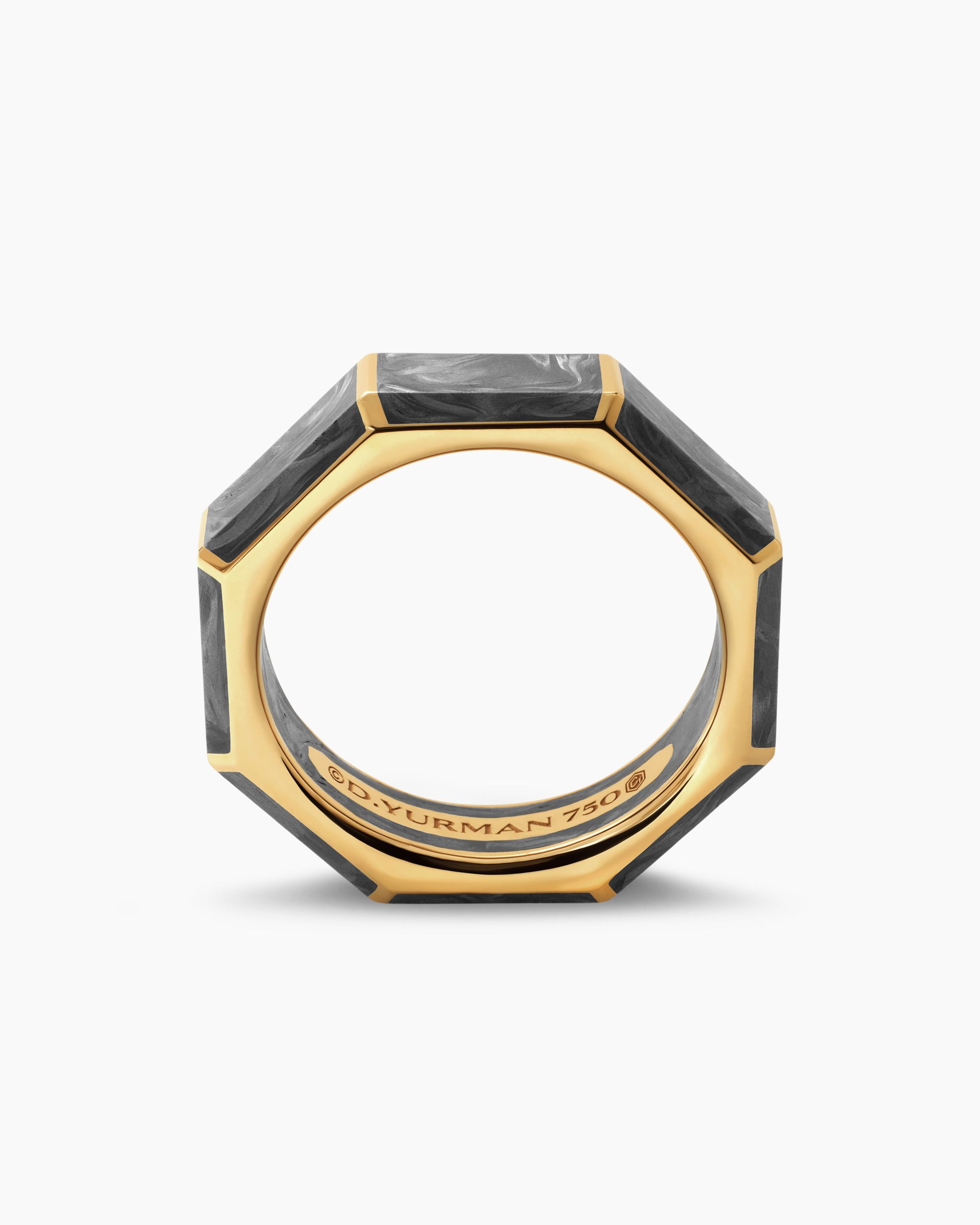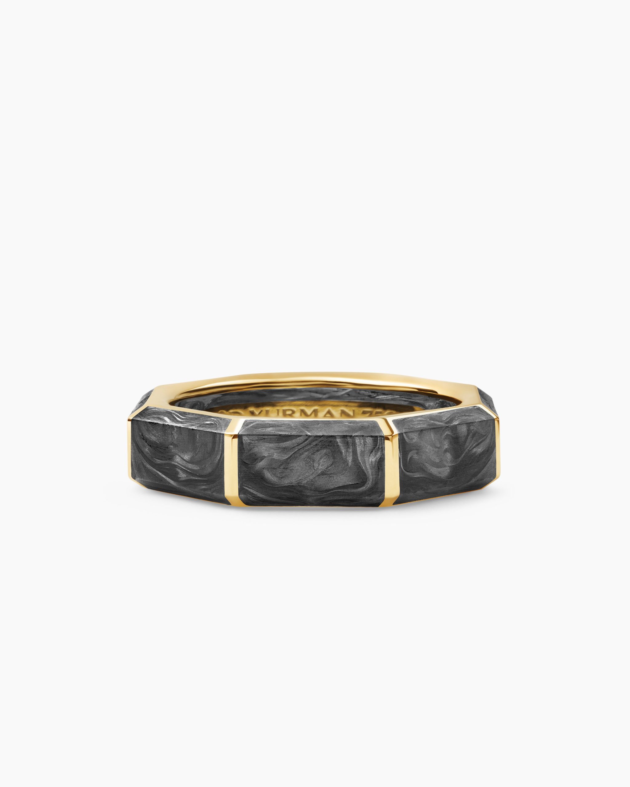 Forged carbon is a lightweight yet strong composite originally used in aeronautics and sports cars. For jewelry, David Yurman pioneered a technique which fuses the modern material and precious metal into innovative, graphic designs. 18-karat yellow goldForged carbonRing, 6mm