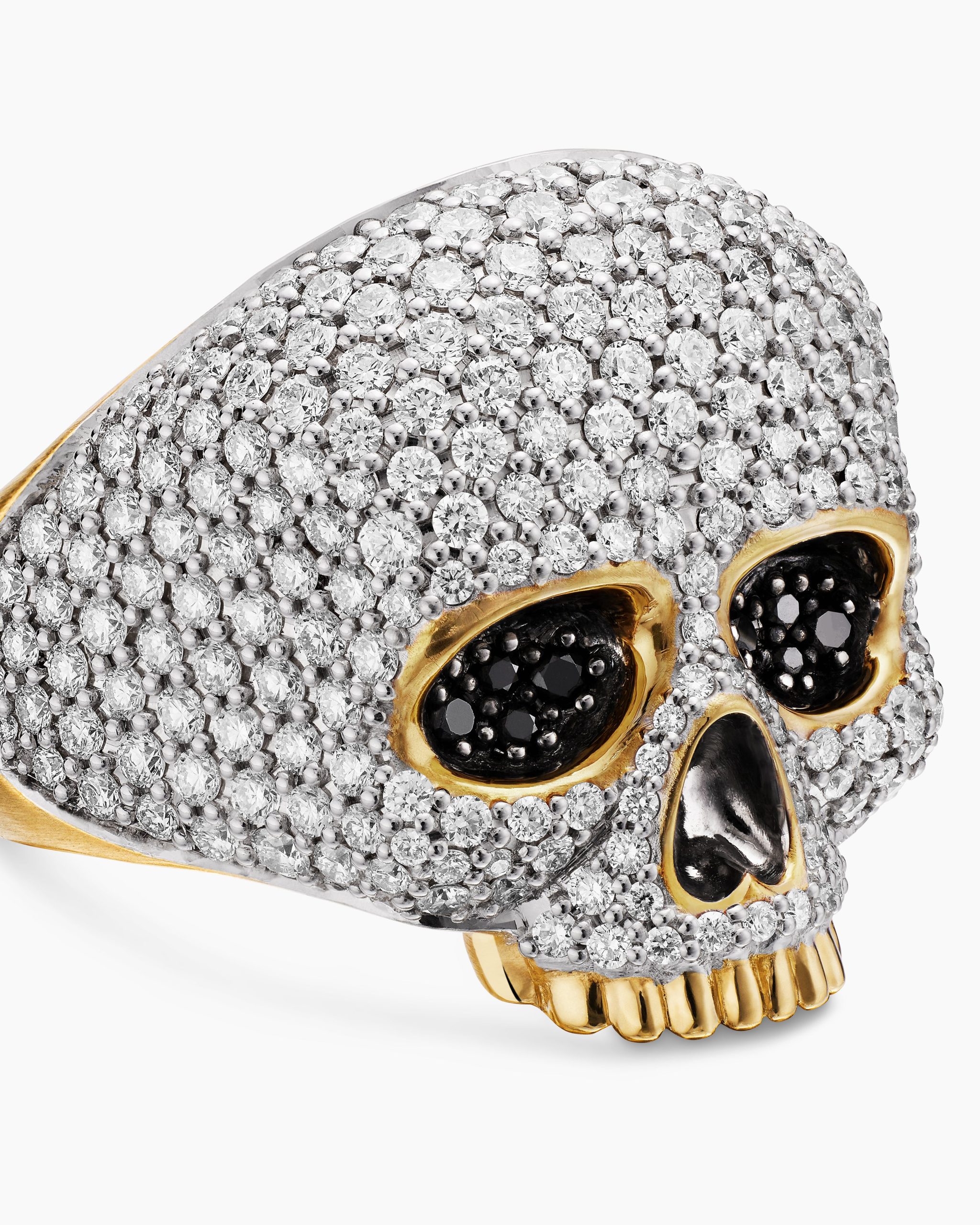 Inspired by Memento Mori—the Medieval practice of reflecting on one’s mortality—the symbol of the skull reminds us to live life to its fullest. 18-karat yellow goldPavé diamonds, 2.72 total carat weightRing, 22mmThis item can be resized. Please contact customer care for further information.