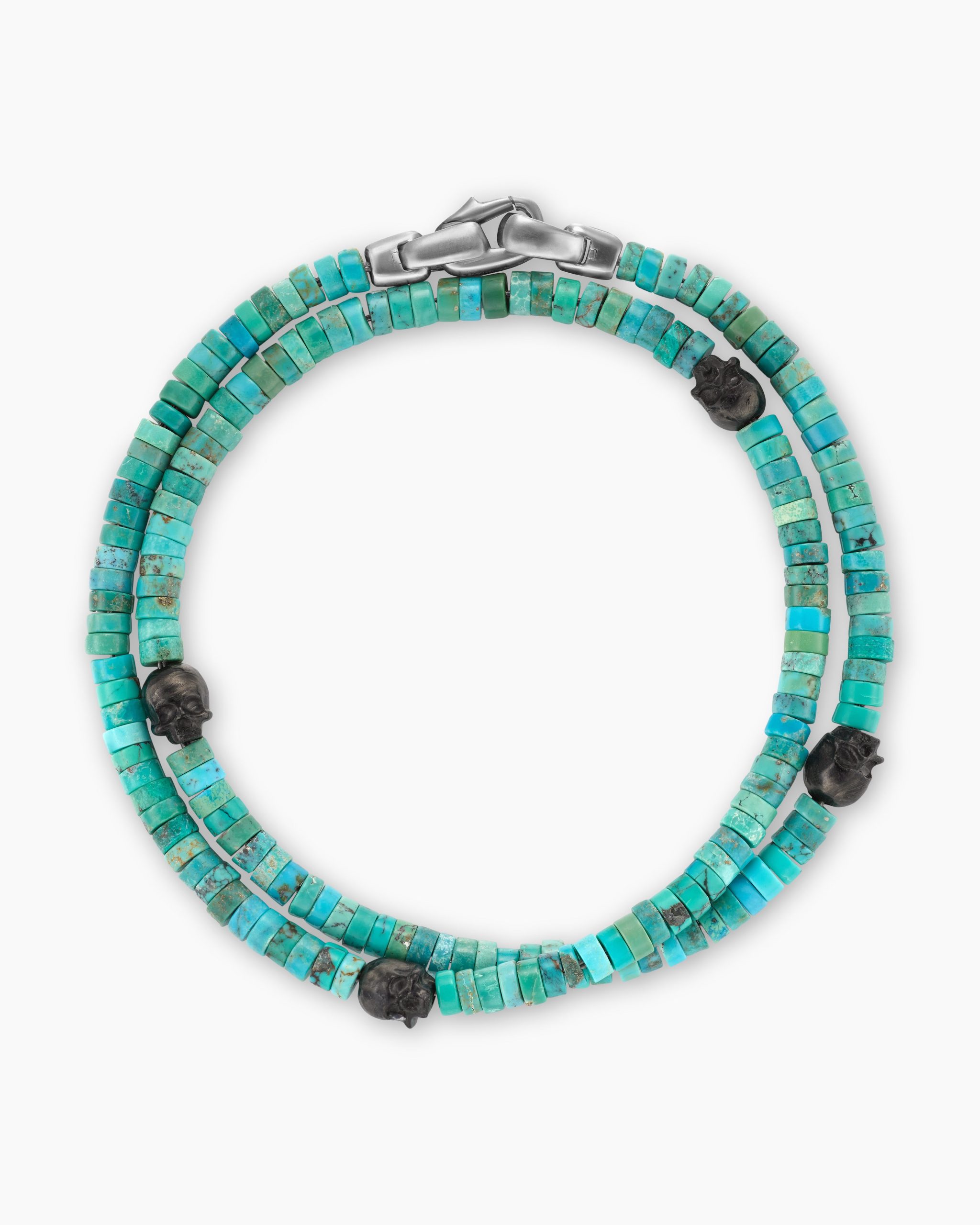 Inspired by Memento Mori—the Medieval practice of reflecting on one’s mortality—the symbol of the skull reminds us to live life to its fullest.Sterling silverAmerican turquoise and forged carbonBracelet, 4mmPush clasp