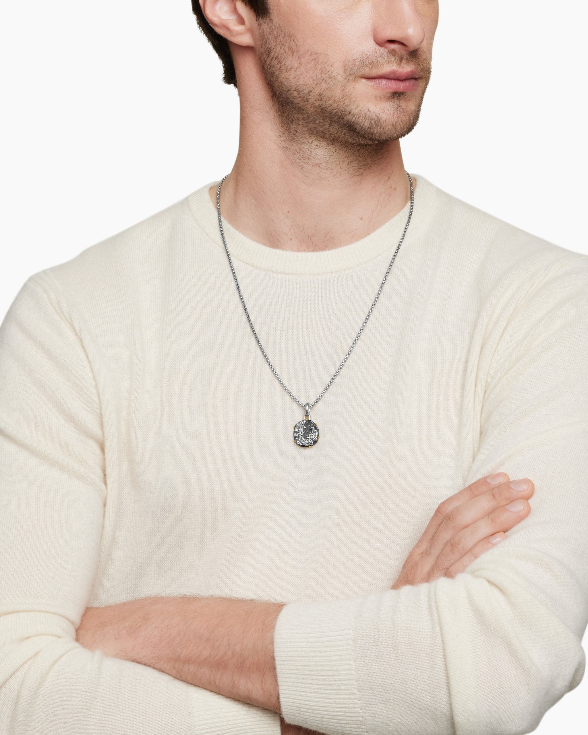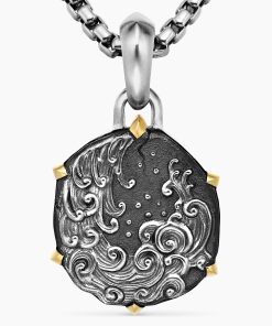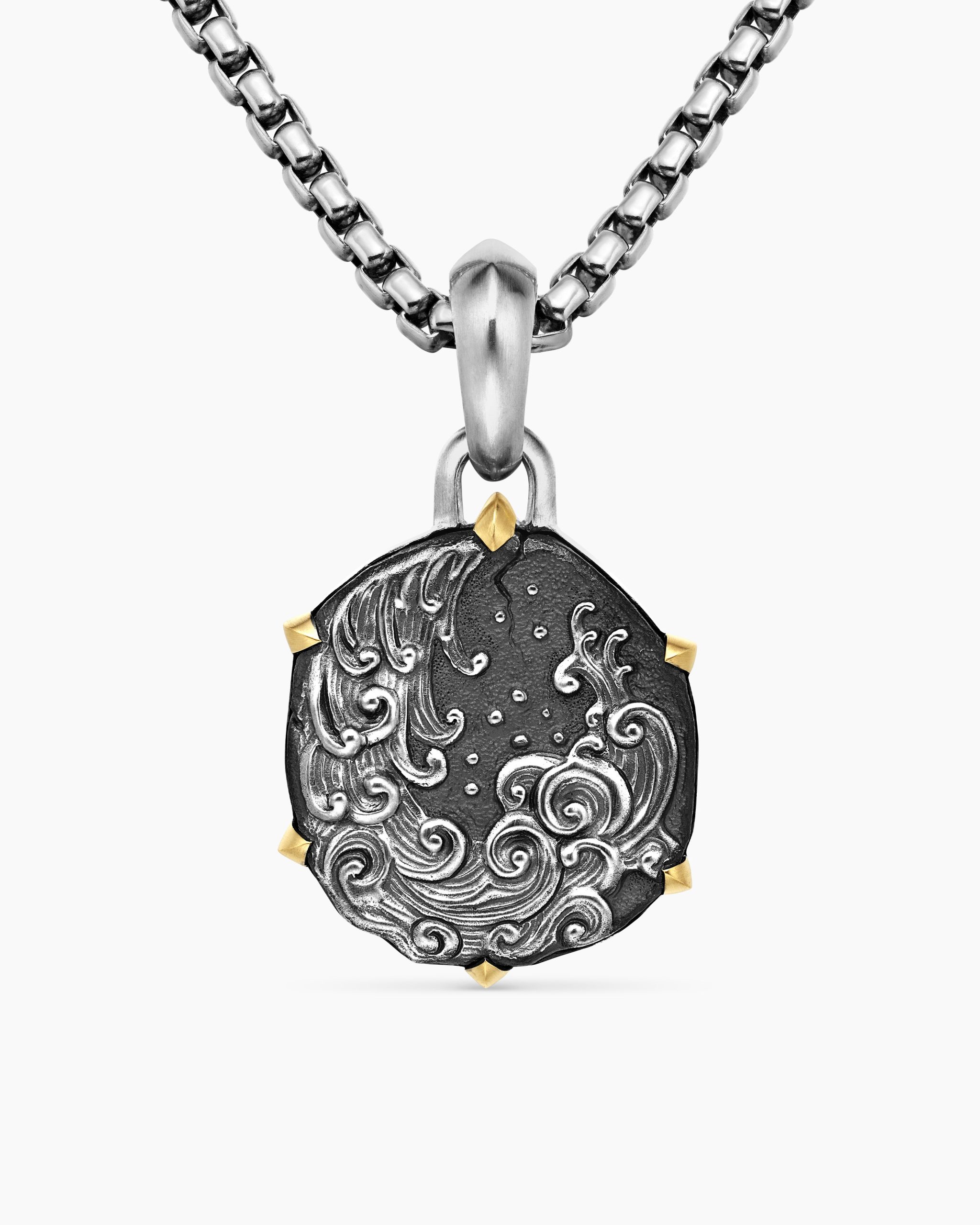 AQUARIUSJanuary 20–February 18 Symbol: Water bearer Innovative and visionary Sterling silver with 18-karat yellow goldAmulet, 33 x 20mmPlease note: amulet only; chain sold separately.Shown with: Box Chain
