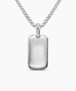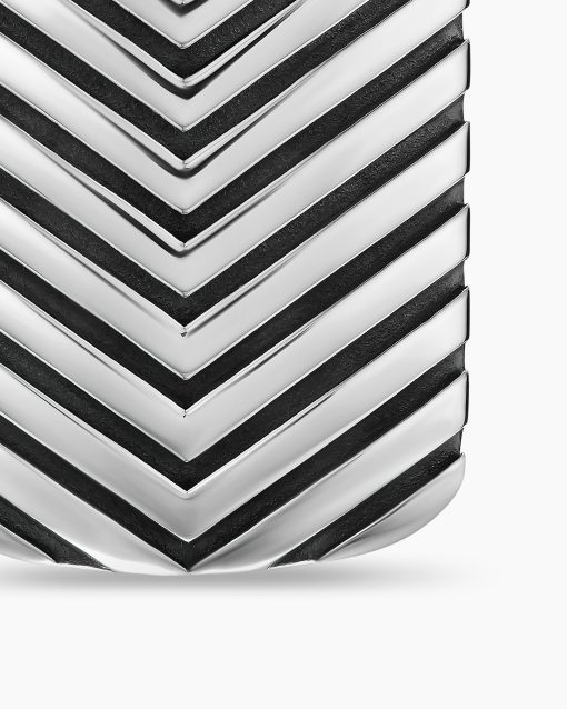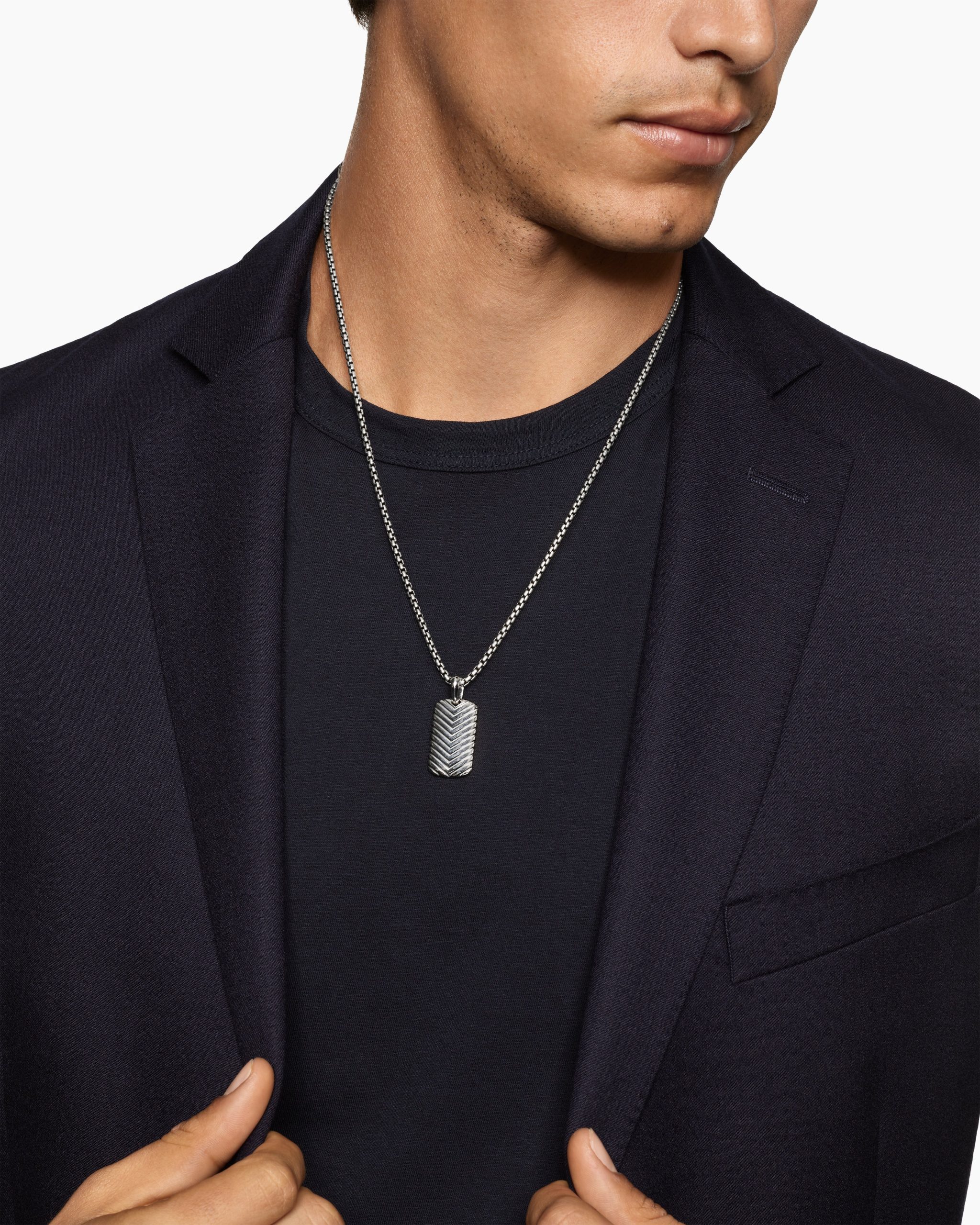 Marked by its double-helix pattern, Chevron is a mirror image of Cable, the house’s signature motif. The ancient V-shaped design offers a sense of modern sophistication, expertly crafted in refined materials, with deep cuts, precise angles, and a play of light and dark to evoke a feeling of forward momentum in the pursuit of excellence. Its elevated look fuses luxury and practicality for everyday wear, imbuing an essence of timelessness and versatility.Tag only; chain not included. To complete the look, add a box chain.Sterling silverTag, 27 x 15.5mmTotal length, 37.8mmThis item can be engraved. Please contact customer care for more information.