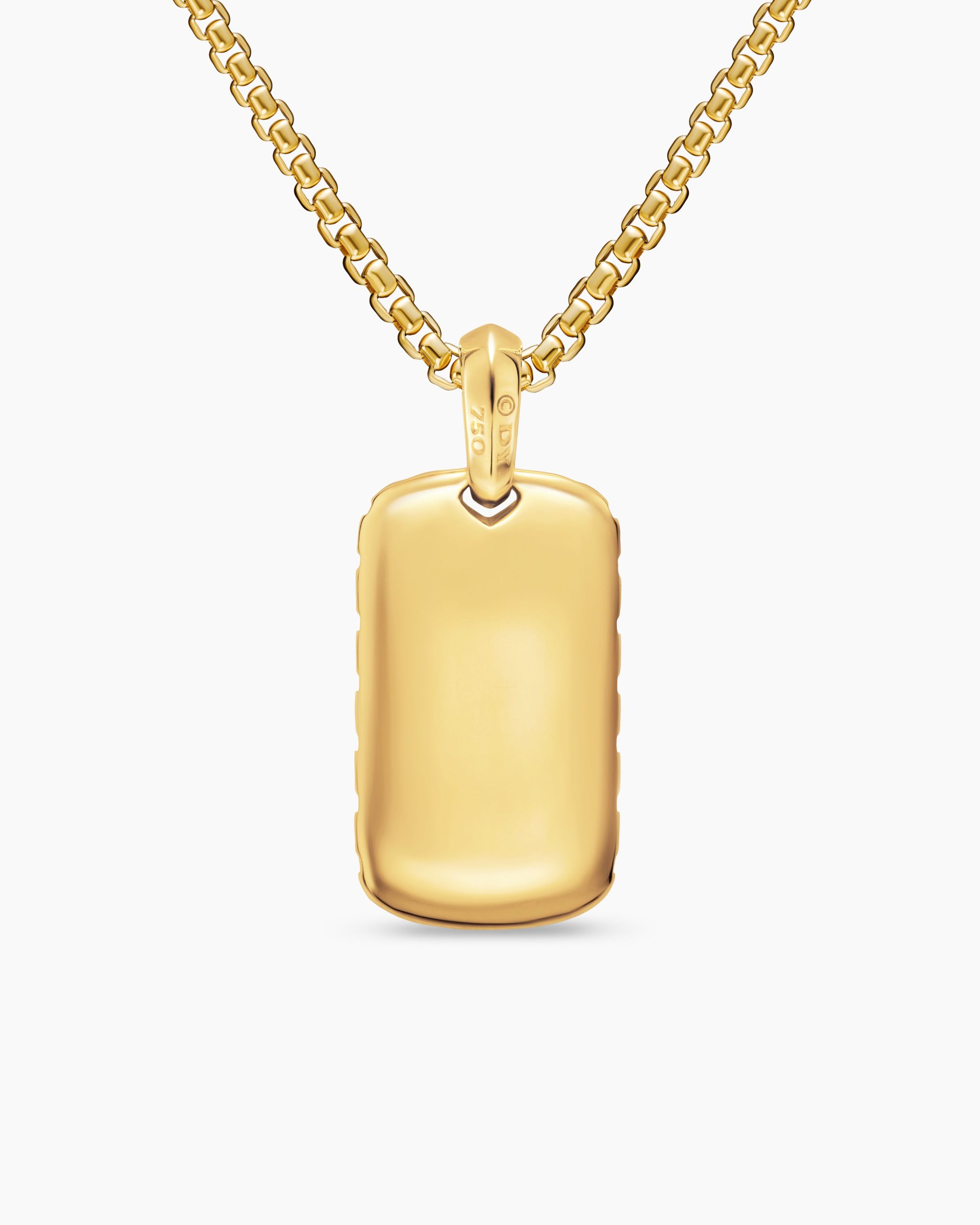 Marked by its double-helix pattern, Chevron is a mirror image of Cable, the house’s signature motif. The ancient V-shaped design offers a sense of modern sophistication, expertly crafted in refined materials, with deep cuts, precise angles, and a play of light and dark to evoke a feeling of forward momentum in the pursuit of excellence. Its elevated look fuses luxury and practicality for everyday wear, imbuing an essence of timelessness and versatility.Tag only; chain not included. To complete the look, add a box chain.18-karat yellow goldBlack onyxTag, 27 x 15.5mmTotal length, 37.8mmThis item can be engraved. Please contact customer care for more information.