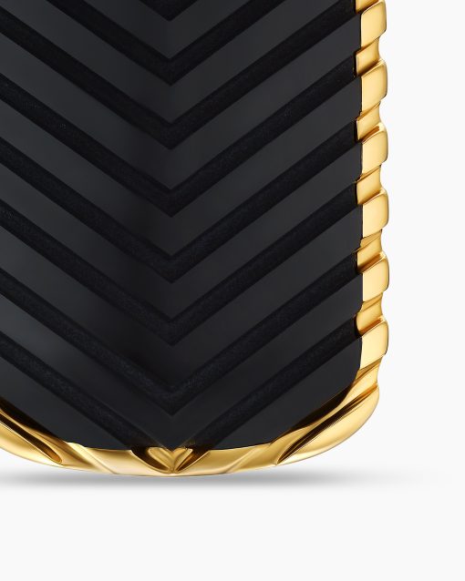 Marked by its double-helix pattern, Chevron is a mirror image of Cable, the house’s signature motif. The ancient V-shaped design offers a sense of modern sophistication, expertly crafted in refined materials, with deep cuts, precise angles, and a play of light and dark to evoke a feeling of forward momentum in the pursuit of excellence. Its elevated look fuses luxury and practicality for everyday wear, imbuing an essence of timelessness and versatility.Tag only; chain not included. To complete the look, add a box chain.18-karat yellow goldBlack onyxTag, 27 x 15.5mmTotal length, 37.8mmThis item can be engraved. Please contact customer care for more information.