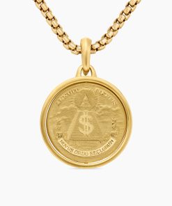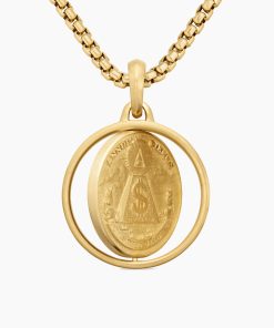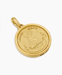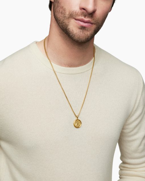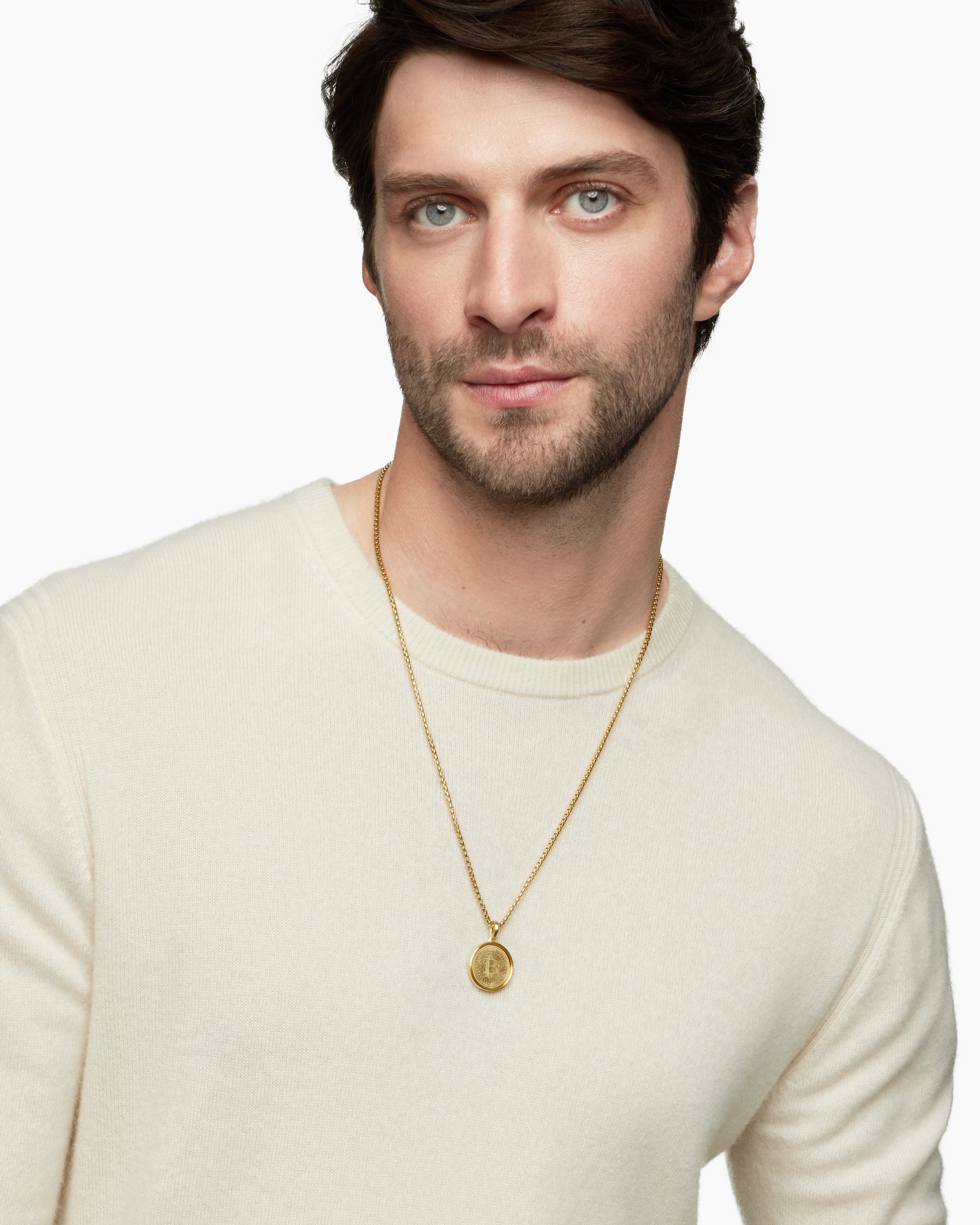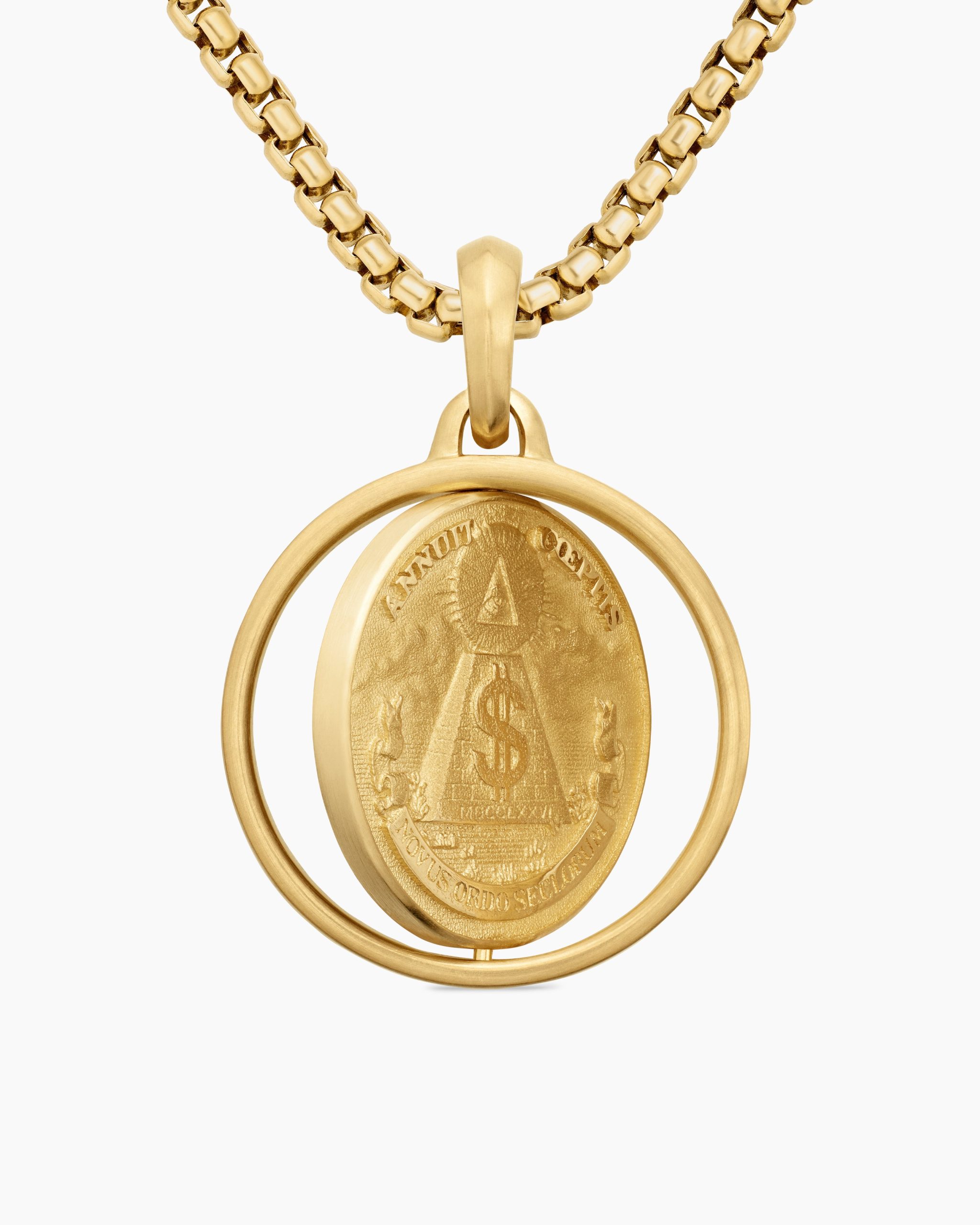 Opposing forces create harmony and balance. Duality explores the nature of opposites through symbolism: hand-carved medallions flip from one side to the other, revealing contrary elemental forces. 18-karat yellow goldAmulet, 30 x 21.8mmThis amulet is interchangeable and can be worn 2 different ways. Coin can rotate so amulet can be worn with either side of the coin facing up.Please note: amulet only; chain sold separatelyShown with: Box ChainFunctioning bail allows pendant to attach to a necklace or bracelet.