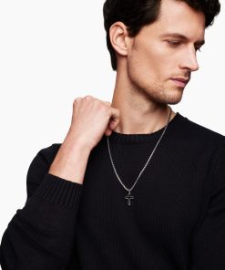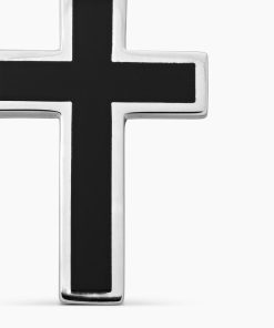 Once linked to spirituality and magic, today’s amulets are expressions of personal style. This collection reflects the modern man’s distinct identities with religious symbols, ancient charms and utilitarian motifs crafted from precious metals and gemstones. Sterling silverBlack onyxCross, 26 x 16mmPlease note: cross only; chain sold separatelyShown with: Box Chain