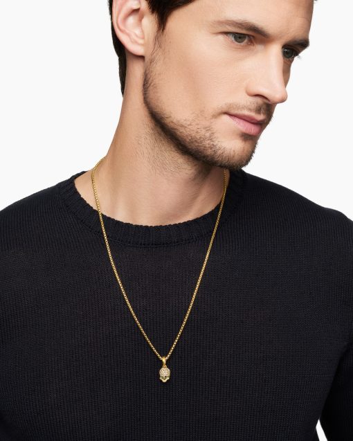 Inspired by Memento Mori—the Medieval practice of reflecting on one’s mortality—the symbol of the skull reminds us to live life to its fullest. 18-karat yellow goldPavé emeralds, 0.01 total carat weightPavé diamonds, 1.04 total carat weightAmulet, 14 x 10mmPlease note: amulet only; chain sold separatelyShown with: Box Chain