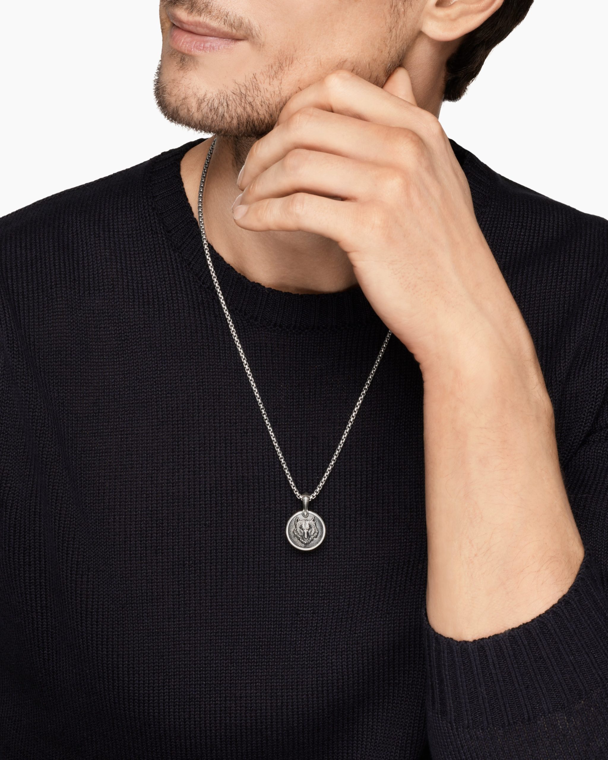 The past and present converge in Petrvs®, which is inspired by ancient coins and stone carvings. Many designs reflect classical intaglios with intricate motifs that express gentlemanly qualities. Sterling silverAmulet, 30.3 x 18.2mmPlease note: amulet only; chain sold separatelyThis item can be engraved. Please contact customer care for more information.