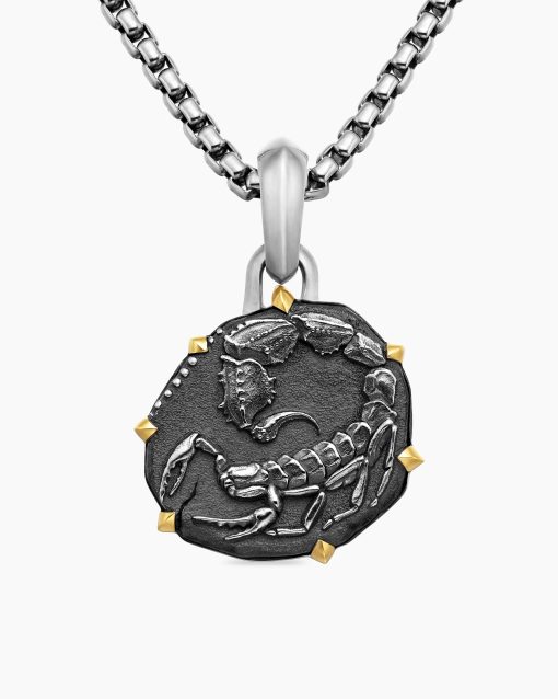SCORPIOOctober 24–November 21 Symbol: Scorpion Brave and daring Sterling silver with 18-karat yellow goldAmulet, 33 x 20mmPlease note: amulet only; chain sold separately.Shown with: Box Chain