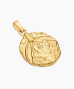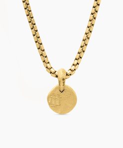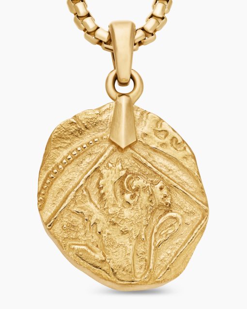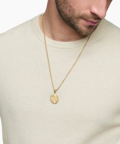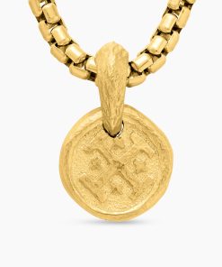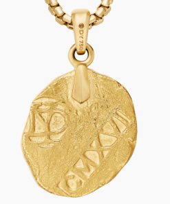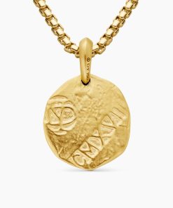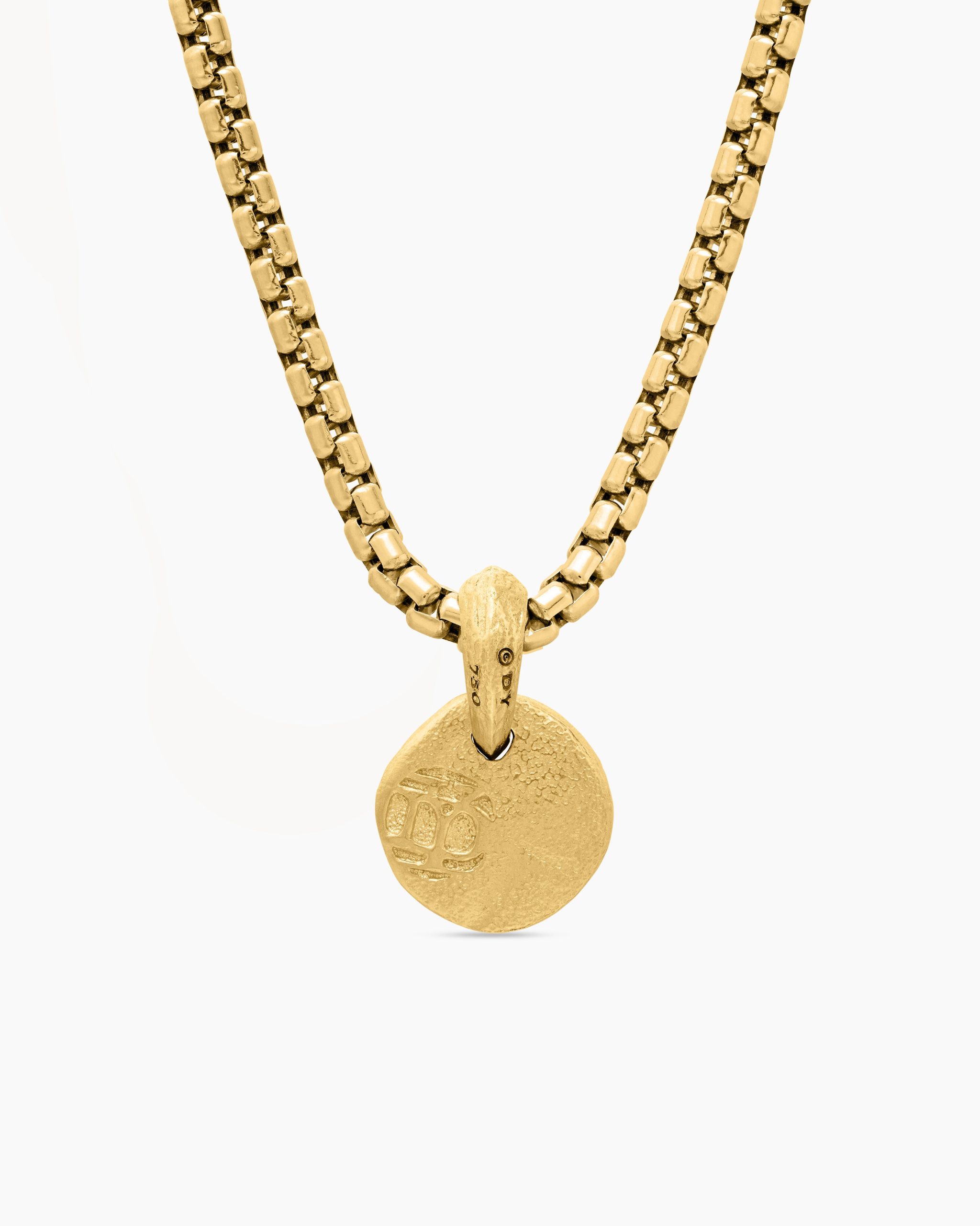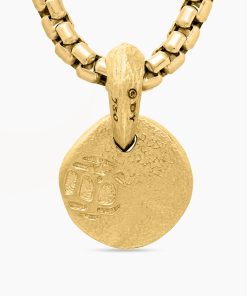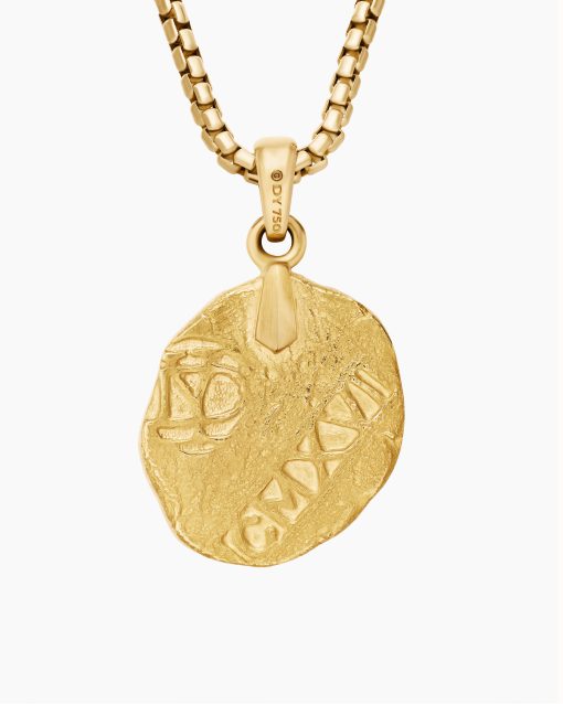 Inspired by artifacts and coins discovered in a sunken pirate ship off of Cape Cod, these designs evoke treasure time-washed by the sea. Artisanal techniques mirror the natural erosion and patinas that occur underwater. 18-karat yellow goldAmulet, 17 x 10.8mmPlease note: amulet only; chain sold separatelyShown with: Box Chain