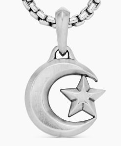 Once linked to spirituality and magic, today’s amulets are expressions of personal style. This collection reflects the modern man’s distinct identities with religious symbols, ancient charms and utilitarian motifs crafted from precious metals and gemstones. Sterling silverAmulet, 28.3 x 17.2mmPlease note: amulet only; chain sold separatelyShown with: Box Chain