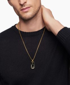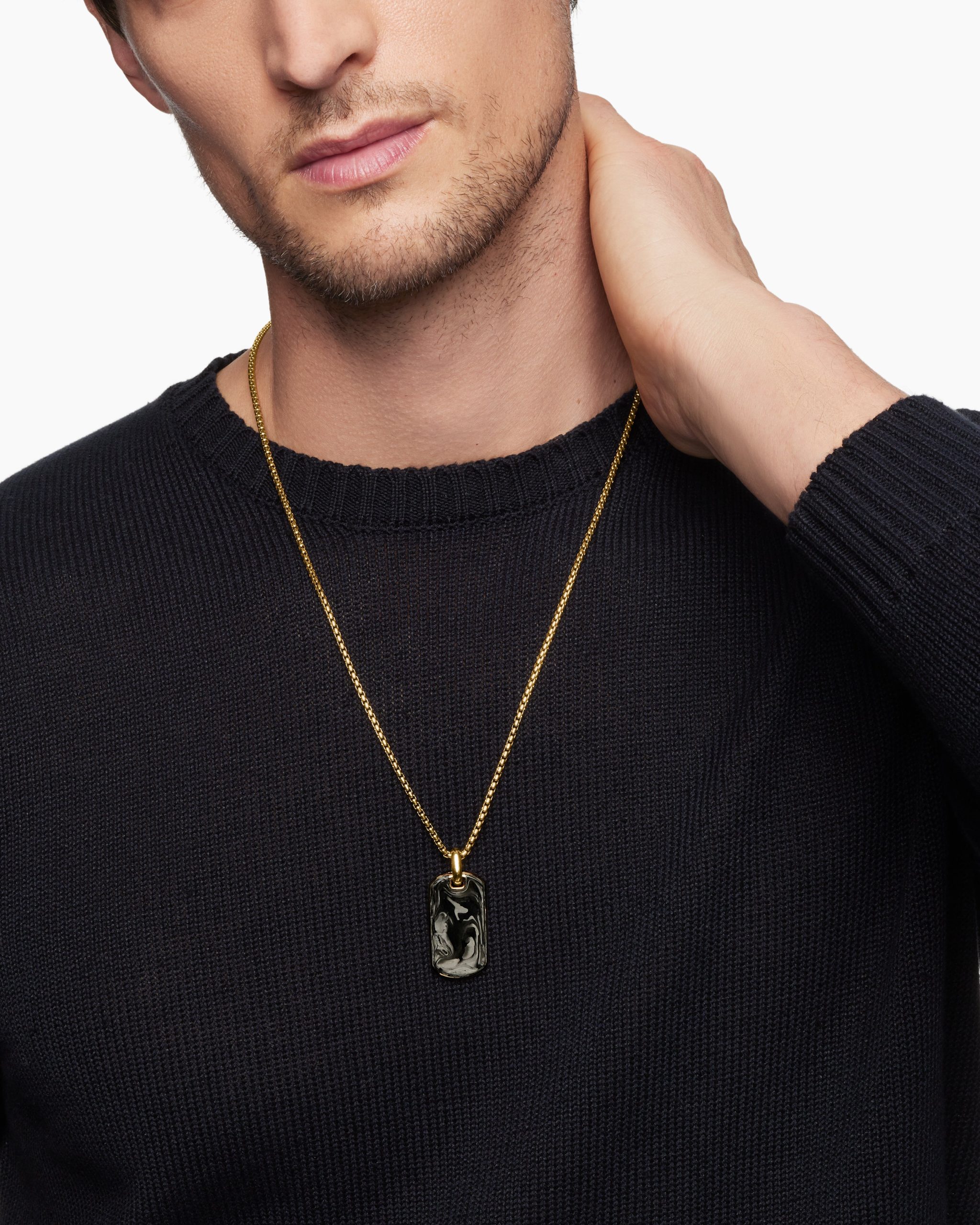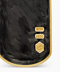 Forged carbon is a lightweight yet strong composite originally used in aeronautics and sports cars. For jewelry, David Yurman pioneered a technique which fuses the modern material and precious metal into innovative, graphic designs. 18-karat yellow goldForged carbonTag, 42 x 19.1mmPlease note: tag only; chain sold separatelyShown with: Box Chain