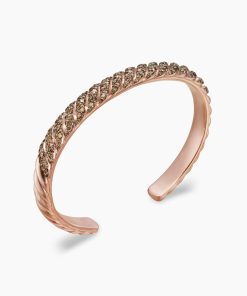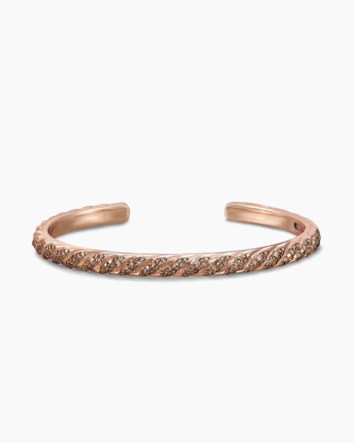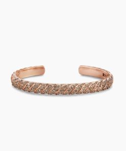 Inspired by his love of architecture and bas-relief sculpture, Evan Yurman designed this modern form by deconstructing Cable—the house’s signature motif—to its essence. Each timeless design is a wearable work of art. Precious metals are meticulously carved with mesmerizing wavelike patterns that dramatically catch the light. Elegant curves highlight the sensuality of the body.18-karat rose goldPavé-set cognac diamonds, total carat weight ranges from 1.49 to 1.89 (dependent on size)Bracelet, 5.5mmHinge opening