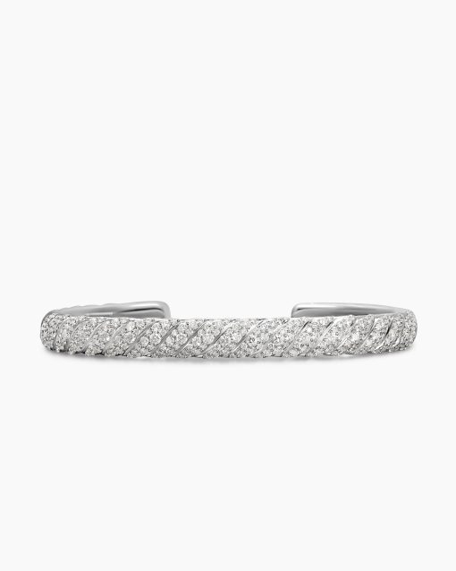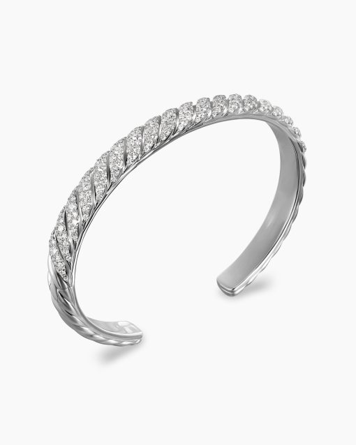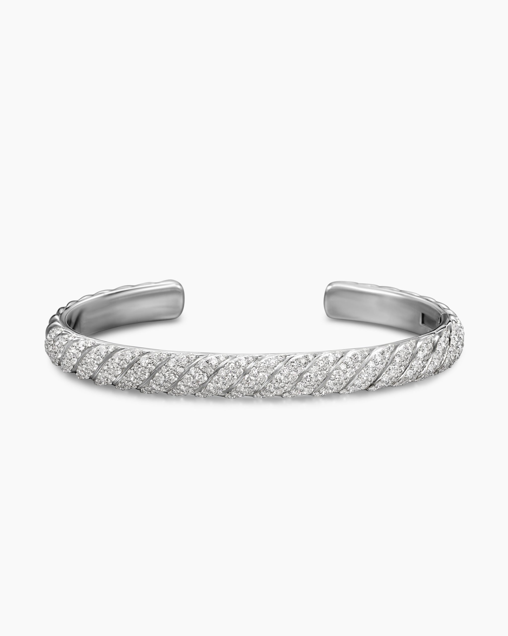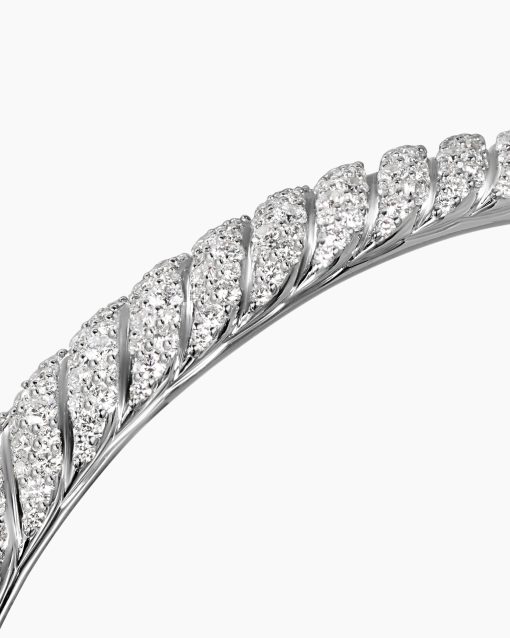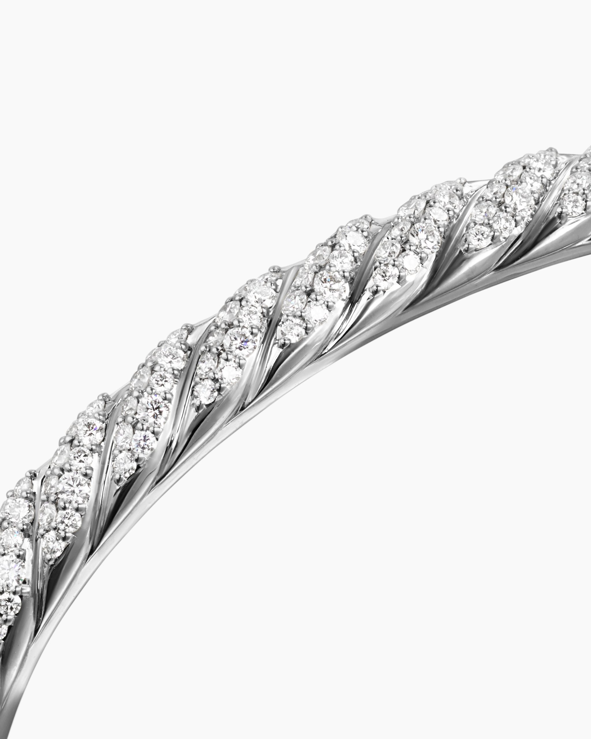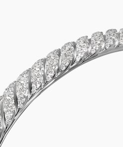 Inspired by his love of architecture and bas-relief sculpture, Evan Yurman designed this modern form by deconstructing Cable—the house’s signature motif—to its essence. Each timeless design is a wearable work of art. Precious metals are meticulously carved with mesmerizing wavelike patterns that dramatically catch the light. Elegant curves highlight the sensuality of the body.18-karat white goldPavé-set diamonds, total carat weight ranges from 2.55 to 3.23 (dependent on size)Bracelet, 7mmHinge opening