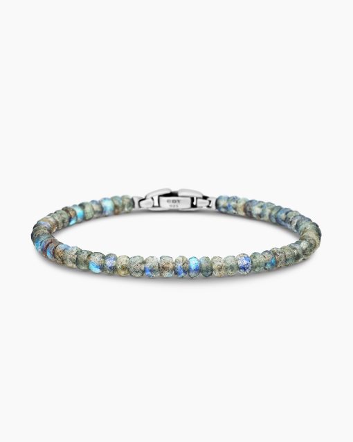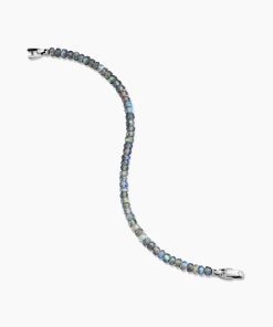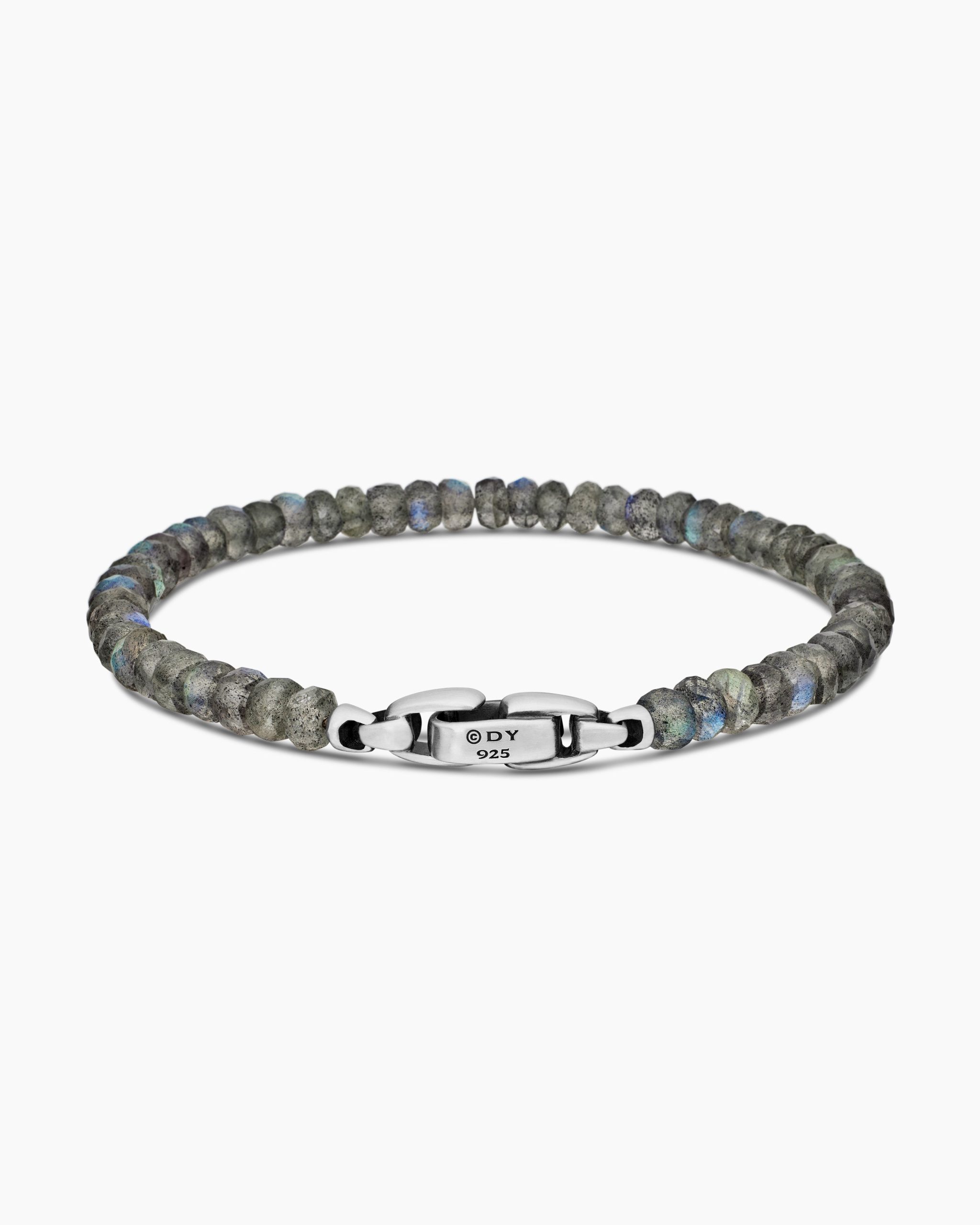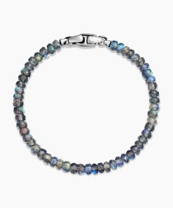 Rooted in spiritual significance, these modern beaded jewelry designs are symbolic of your inner spirit and authenticity. They are meant to be collected, layered, and worn continuously as you move through life’s journey. Expertly crafted, they feature a variety of smoothly polished, semi-precious, and rare gemstones, such as quartz, black onyx and tiger’s eye.Sterling silverLabradoriteBracelet, 5mmPush clasp