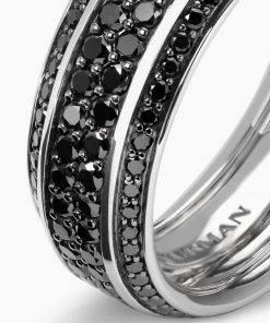 This hand-finished piece is inspired by beveled edges. 18-karat white goldPavé black diamonds, 2.18 total carat weightRing, 8.5mmThis item can be engraved. Please contact customer care for more information.