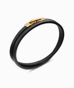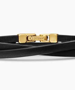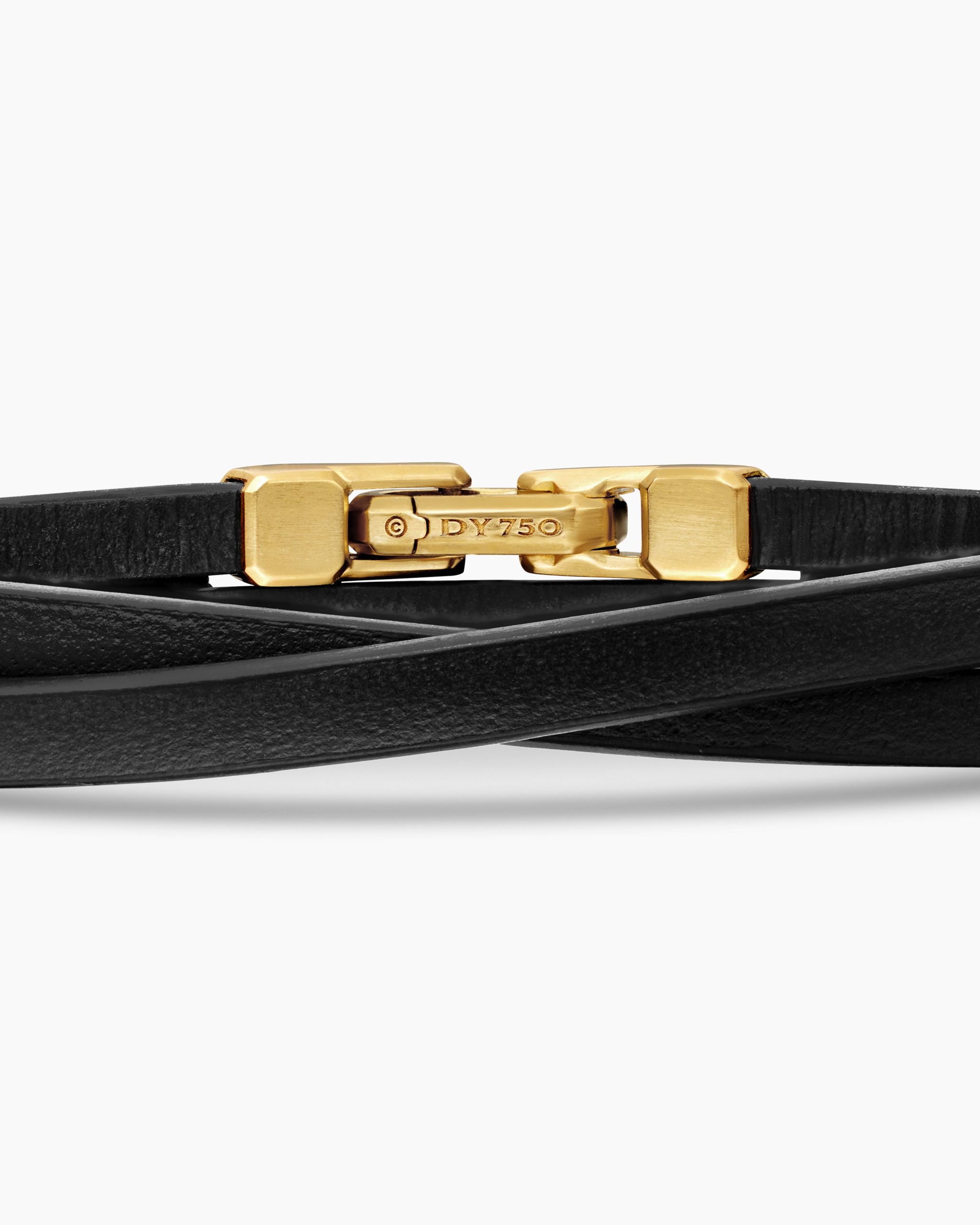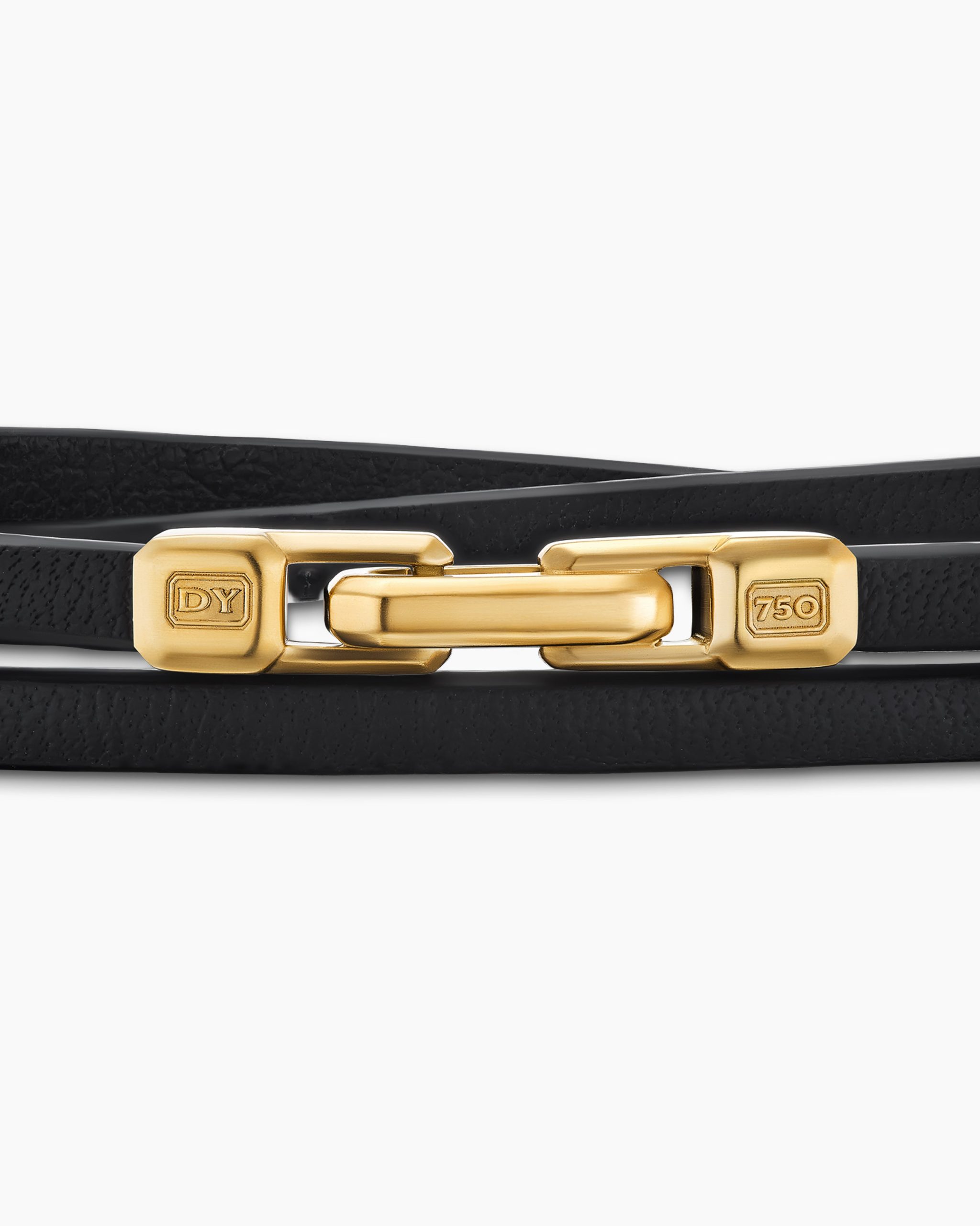 Inspired by clean lines and smooth metal surfaces, these minimalist designs are sculpted with engineered precision. 18-karat yellow goldBlack leatherBracelet, 5.2mmPush clasp