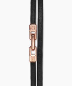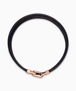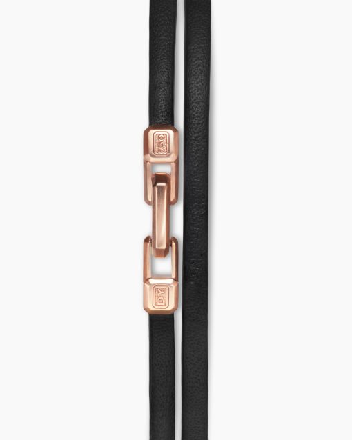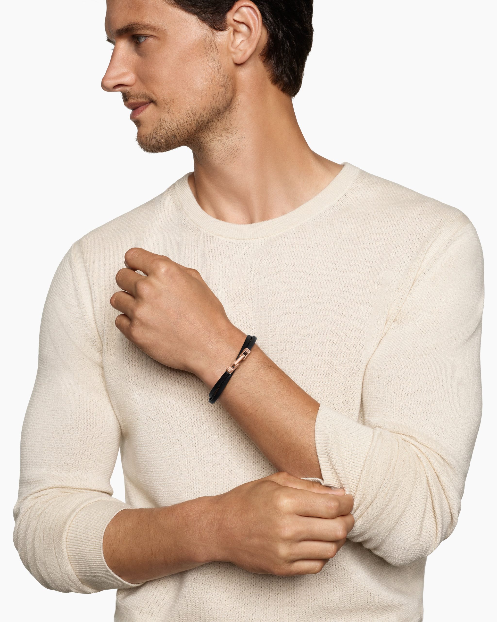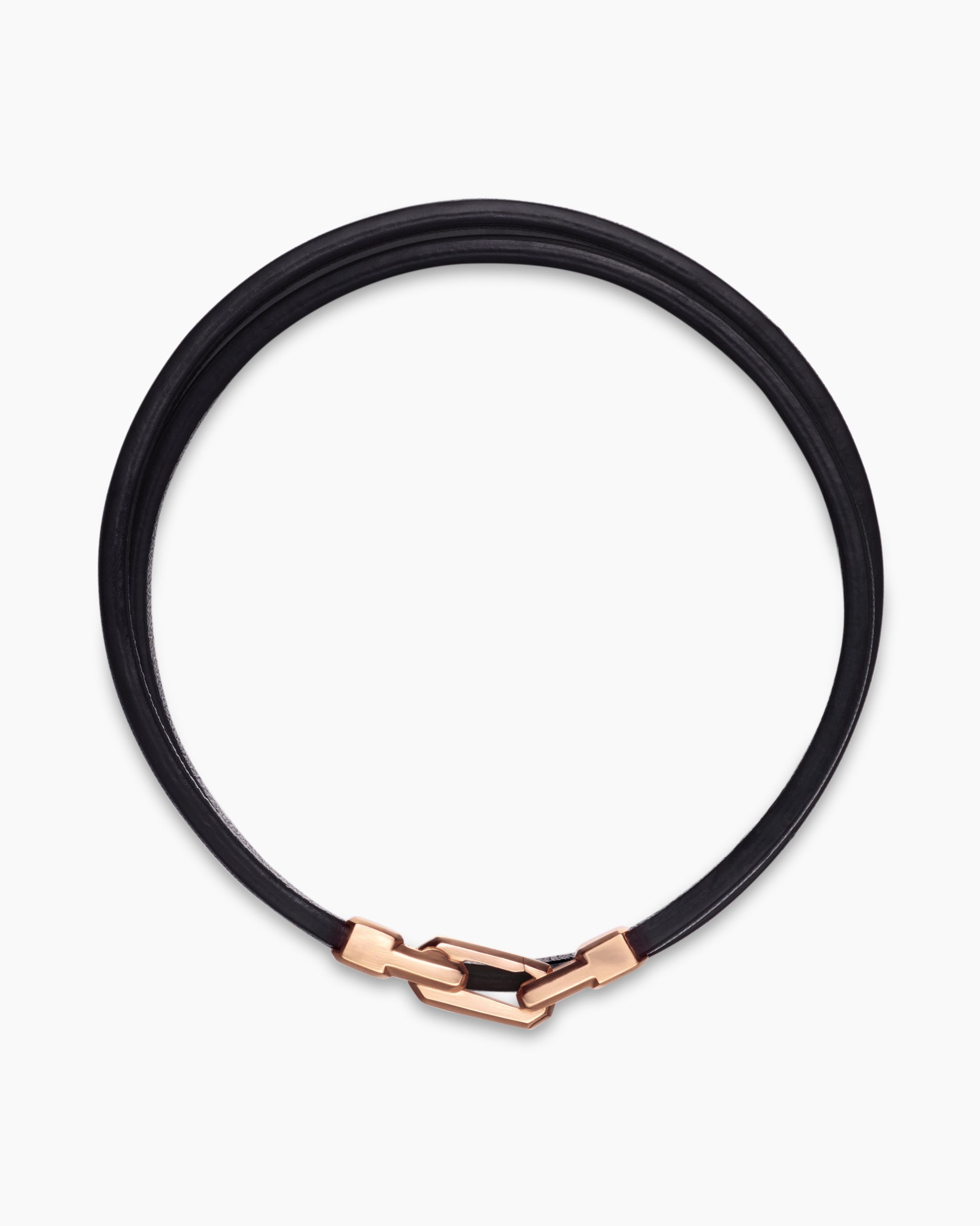 Inspired by clean lines and smooth metal surfaces, these minimalist designs are sculpted with engineered precision.18-karat rose gold Black leatherBracelet, 5.2mmPush clasp
