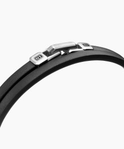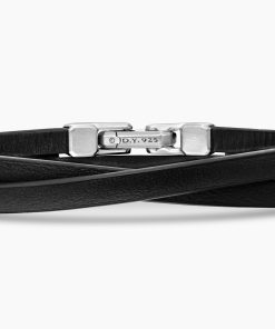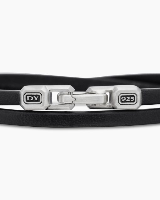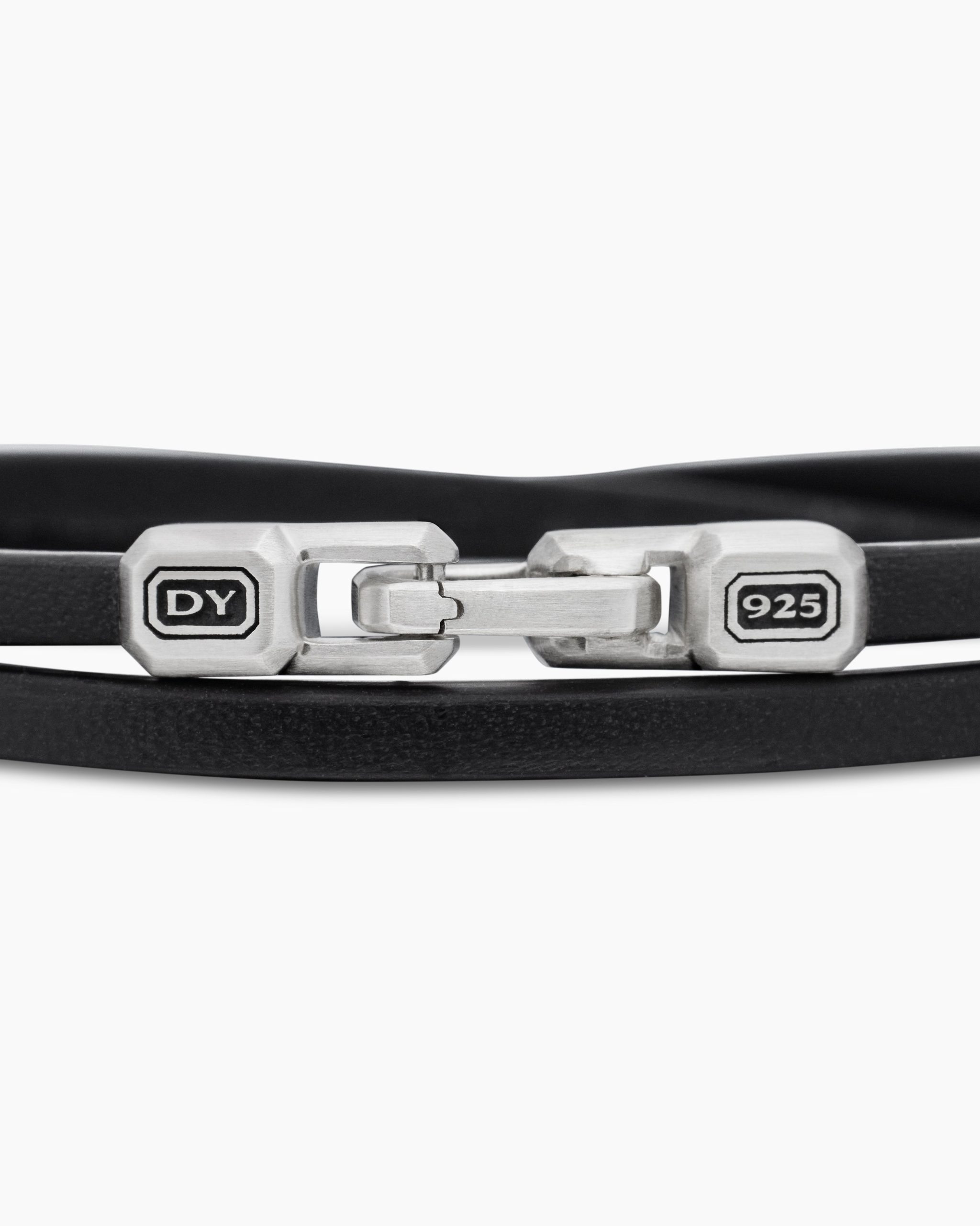 Inspired by clean lines and smooth metal surfaces, these minimalist designs are sculpted with engineered precision. Sterling silverBlack leatherBracelet, 5.2mmPush clasp