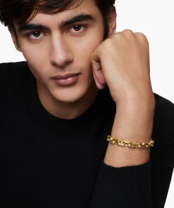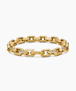 This distinctive men’s design is inspired by modern architecture. 18-karat yellow goldPavé diamonds, 0.77 total carat weightBracelet, 7.5mmPush clasp