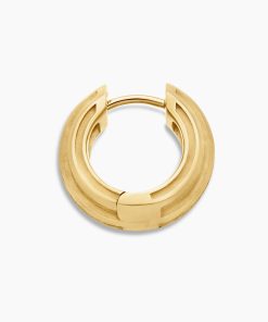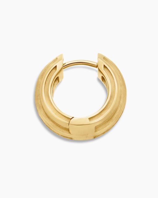 Inspired by clean lines and smooth metal surfaces, these minimalist designs are sculpted with engineered precision. 18-karat yellow goldHoop earring, 14mmPlease note: sold as a single hoop