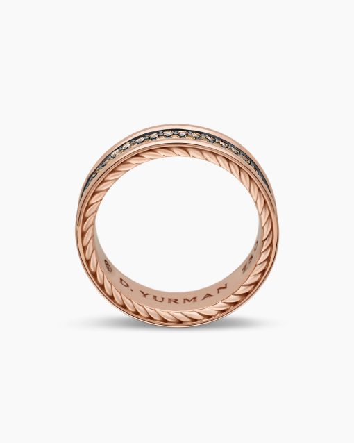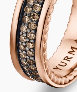 Inspired by clean lines and smooth metal surfaces, these minimalist designs are sculpted with engineered precision. Every pavé diamond or colored gemstone is carefully matched for color and hand set—a tribute to DY artistry. 18-karat rose goldPavé cognac diamonds, 1.37 total carat weightRing, 6.5mm