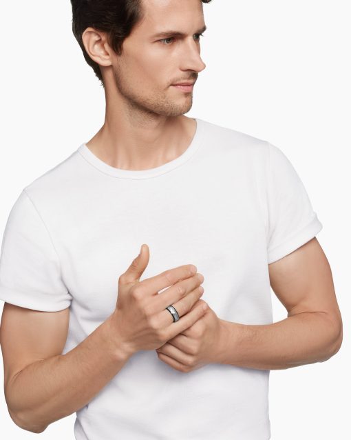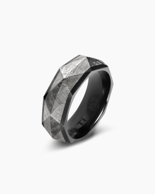 This distinctive men’s design is inspired by modern architecture. Black titaniumMeteoriteRing, 8.5mm