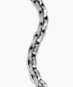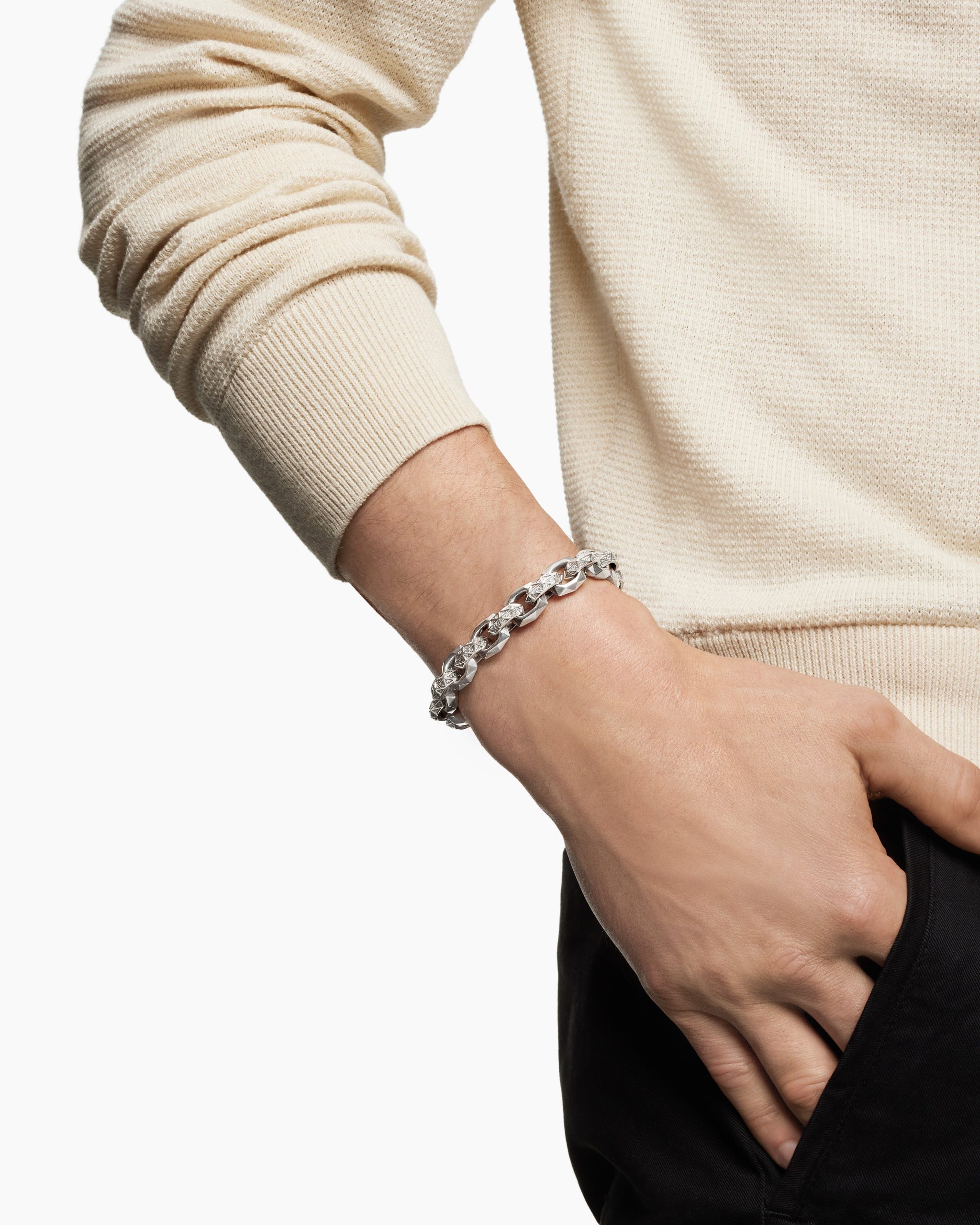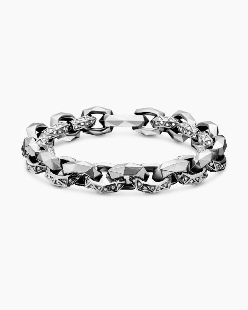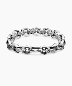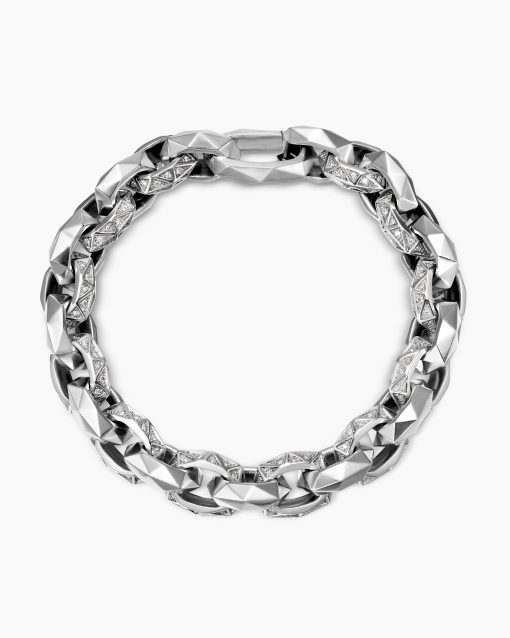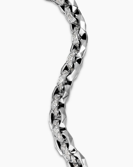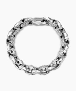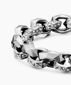 This distinctive men’s design is inspired by modern architecture. Sterling silverPavé-set diamonds, total carat weight ranges from 1.37 to 1.60 (dependent on size)Bracelet, 11.6mmPush clasp