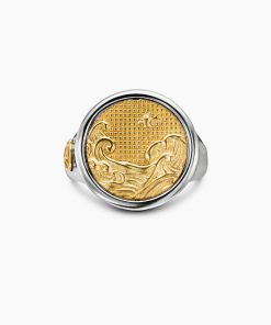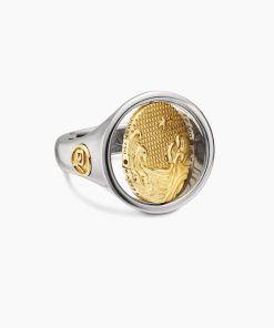 Opposing forces create harmony and balance. Duality explores the nature of opposites through symbolism: hand-carved medallions flip from one side to the other, revealing contrary elemental forces. Sterling silver with 18-karat yellow goldRing, 20mmThis ring is interchangeable and can be worn 2 different ways. Coin can rotate so ring can be worn with either side of the coin facing up.