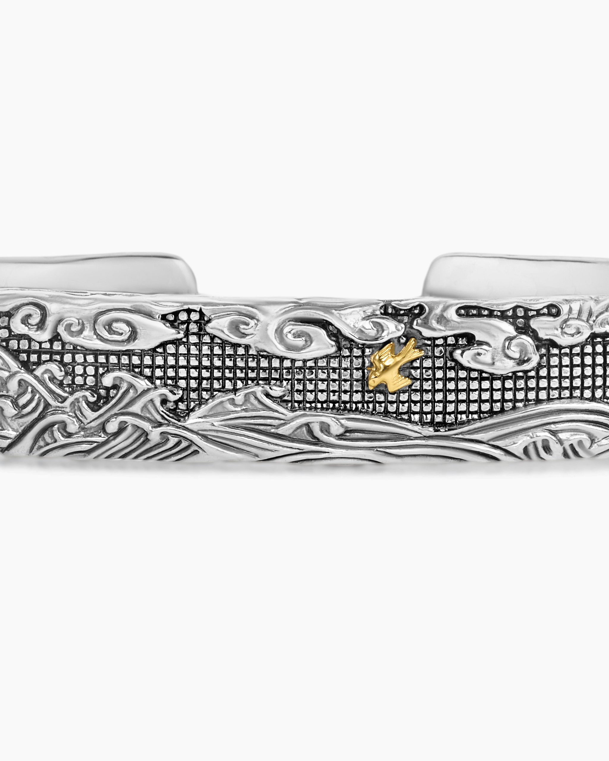 Inspired by Japanese wood-block prints and 18th-century samurai swords, David Yurman translates the beauty of ocean waves into wearable art. Sterling silver with 18-karat yellow goldCuff, 12mmThis item can be engraved. Please contact customer care for more information.