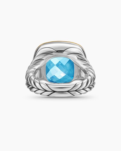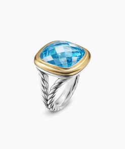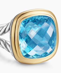 The Albion® Collection’s unique cushion-cut center stone was David Yurman’s innovative solution to use an oversize gemstone in a refined modern setting with classical proportions.Sterling silver with 18-karat yellow goldBlue topaz, 15.20 total carat weightStone, 15mmRing, 19.2mmThis item can be resized. Please contact customer care for more information.