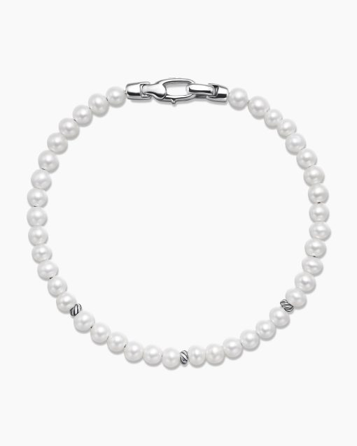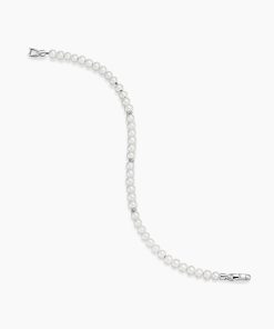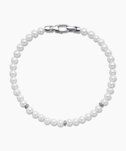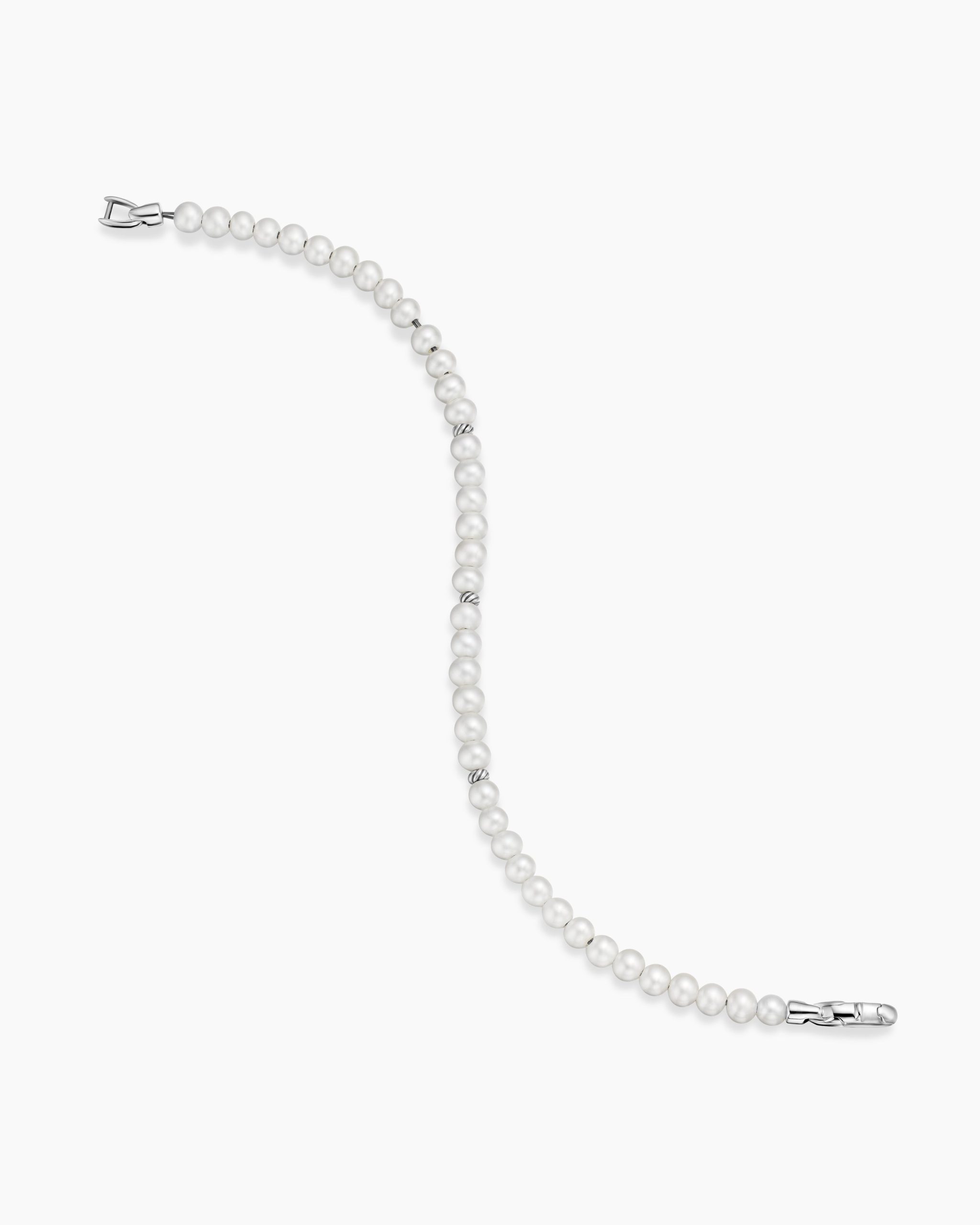 Named after the French word for delicate jewels, the Bijoux Collection combines two David Yurman design elements—lustrous pearls and sculptural chains—in effortless strands that are perfect for layering. Sterling silverCultured freshwater pearlsBracelet, 4mmPush clasp