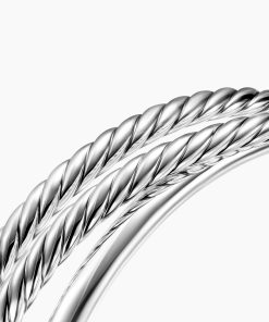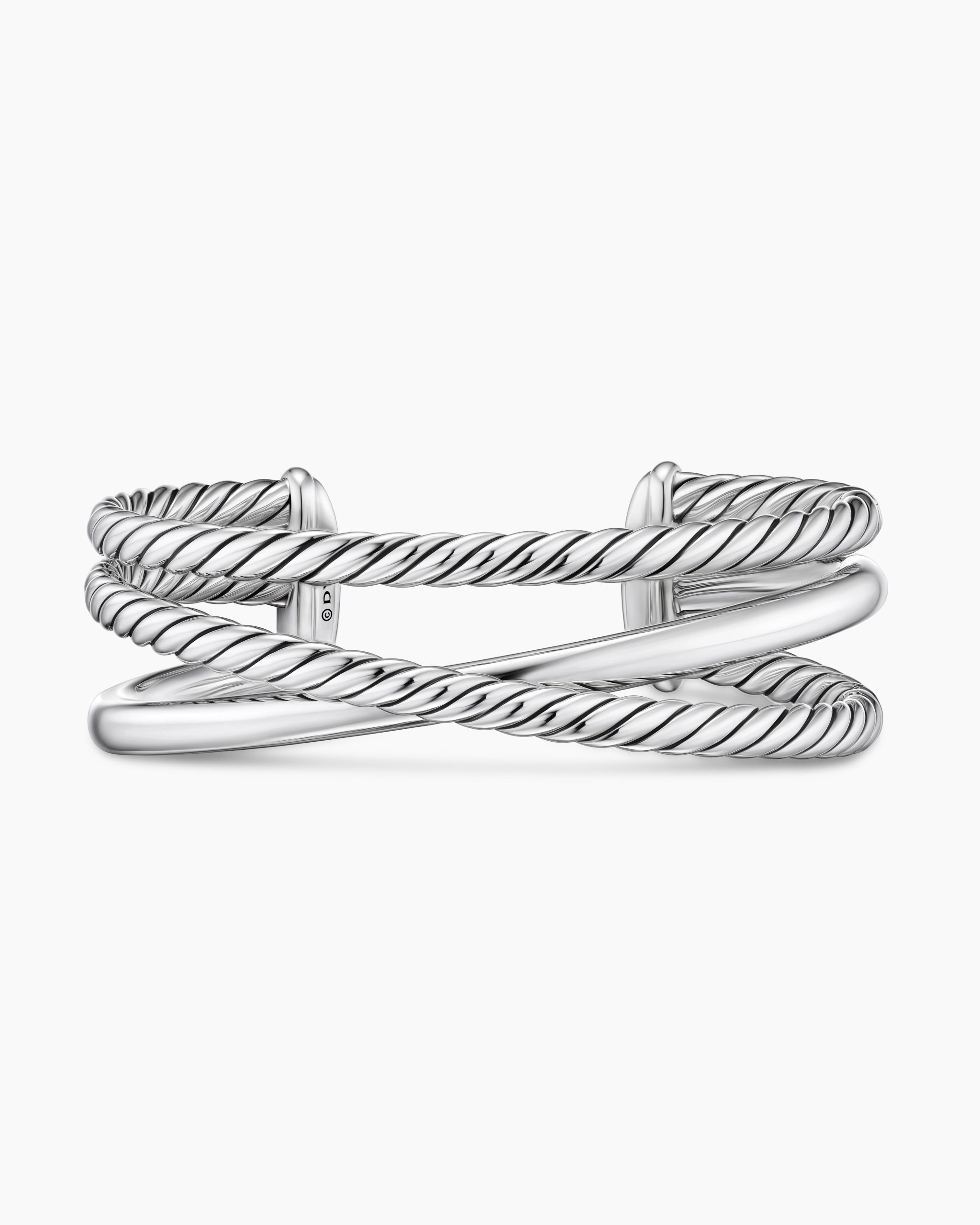 The Crossover Collection® explores the rhythmic weaving of line to create form and movement. Using a dynamic range of smooth and cabled cords, the individual strands are meticulously entwined.Sterling silverBracelet, 19mmHinge opening
