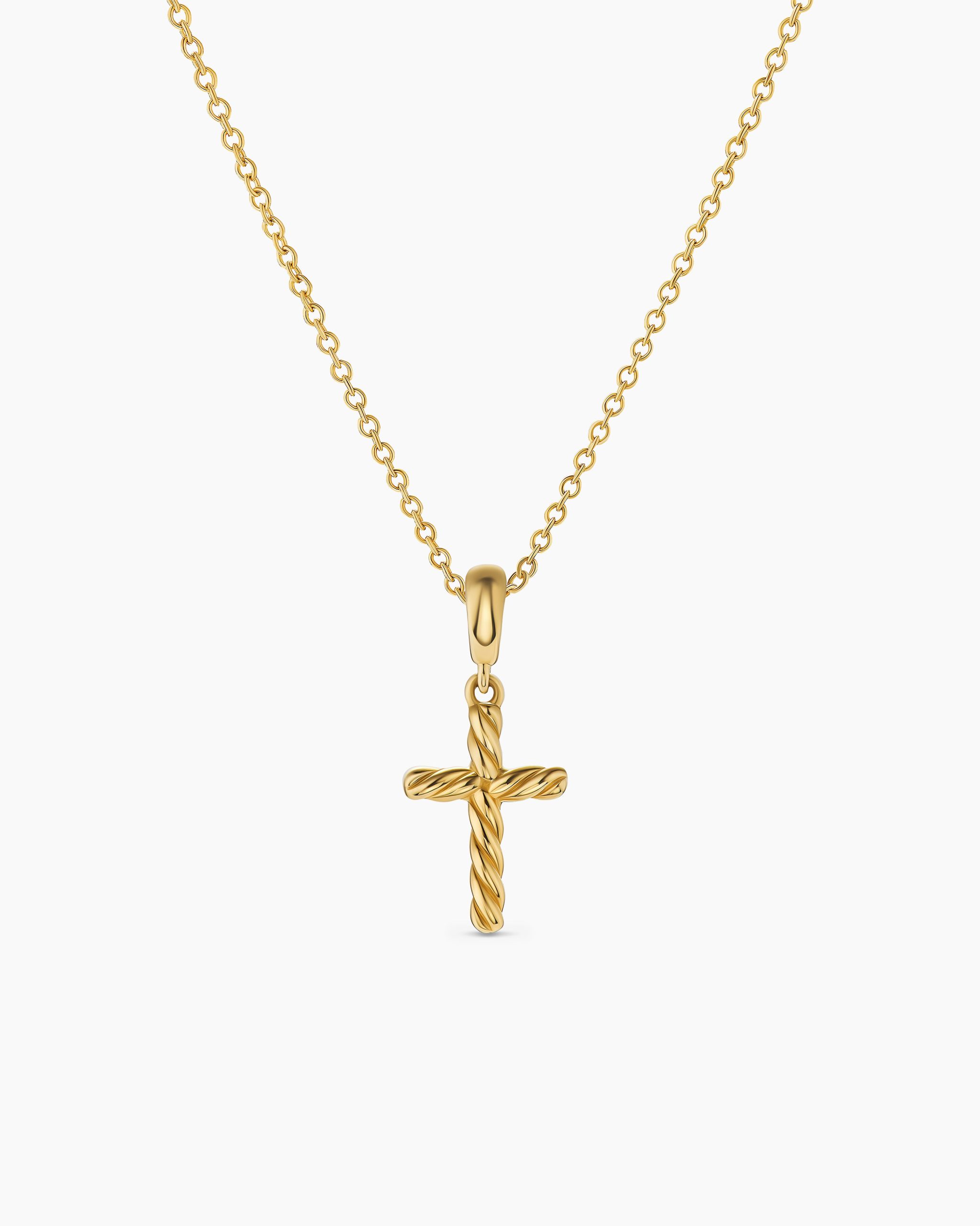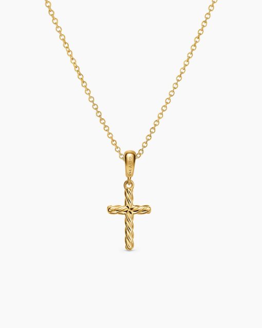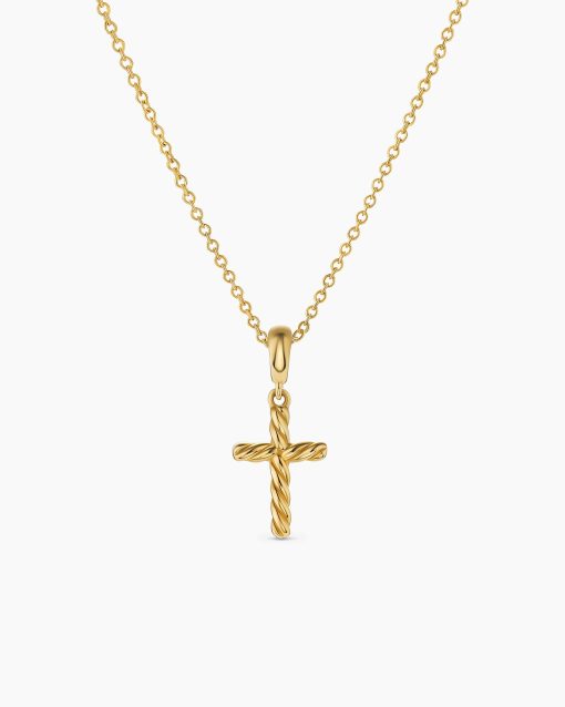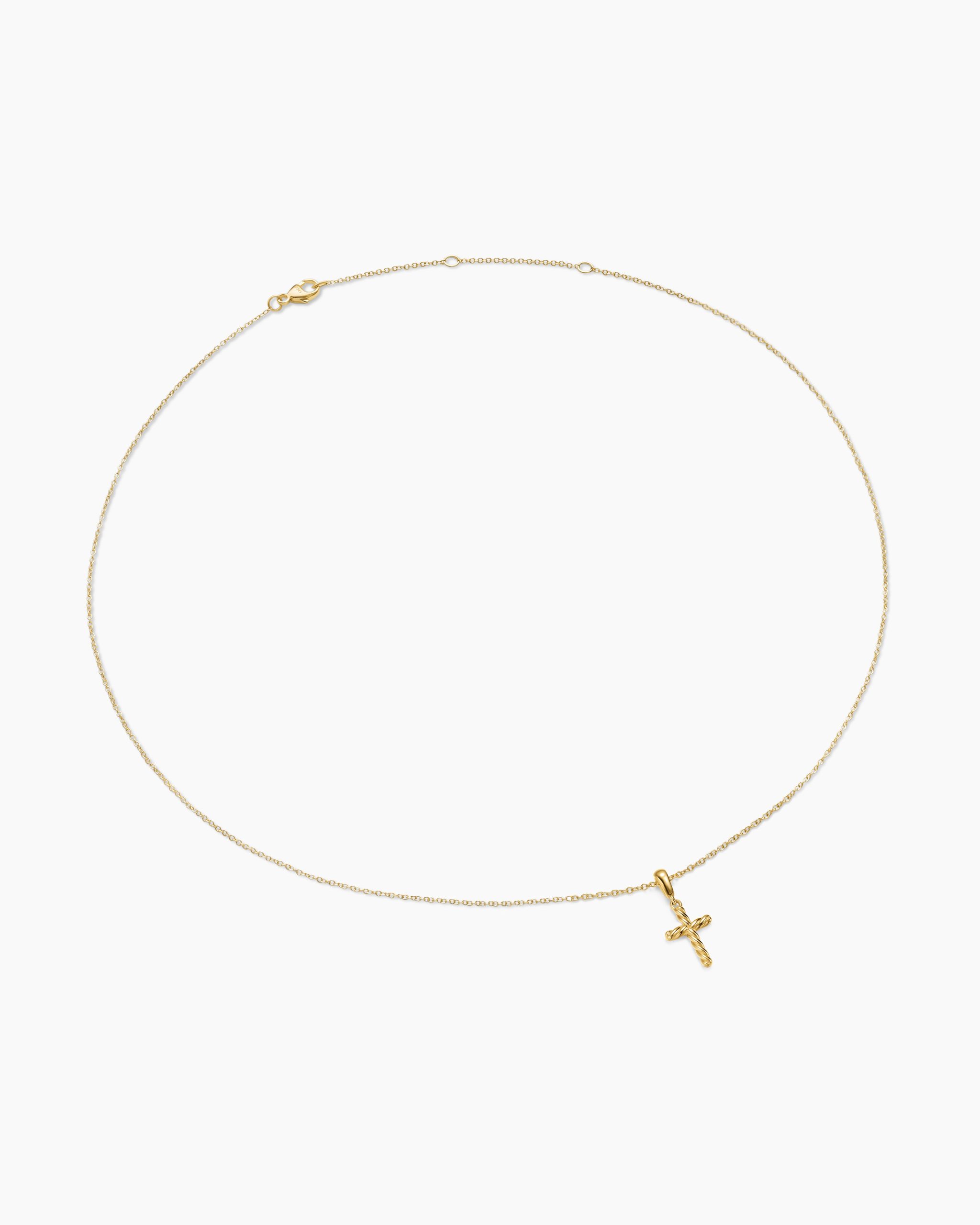 David Yurman’s iconic Cable motif subtly adorns a universal symbol or shape, creating a modern talisman meant to be collected, combined and treasured.18-karat yellow goldCross, 17.5 x 7.8mmChain, 1.1mmLobster claspAdjustable length, 16-18in