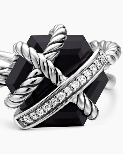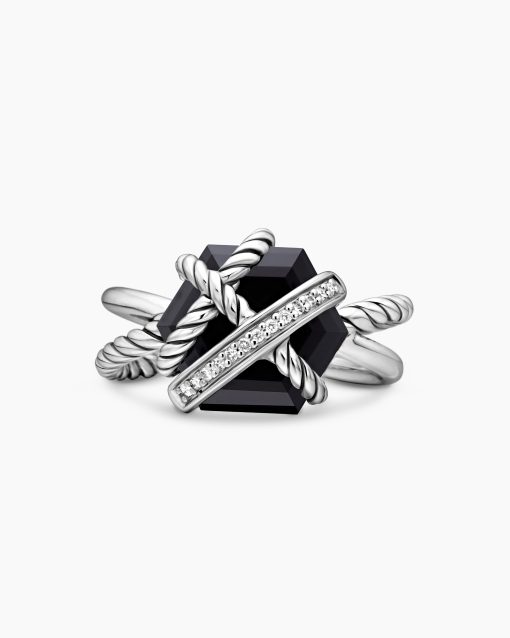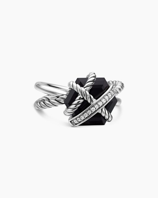 Cable Wrap Ring with Black Onyx and Pavé Diamonds