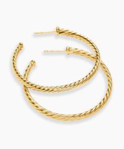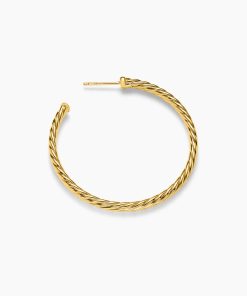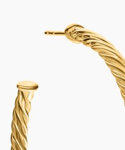 In Sculpted Cable, David Yurman transforms his signature design motif into a carved form. The effect is an entrancing wavelike pattern that retains the dimensional look of Cable’s original helix. 18-karat yellow gold Earring diameter, 1.5inCablespira® is a patented DY construction that is highly flexible and exceptionally comfortable to wear.