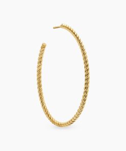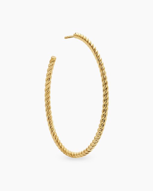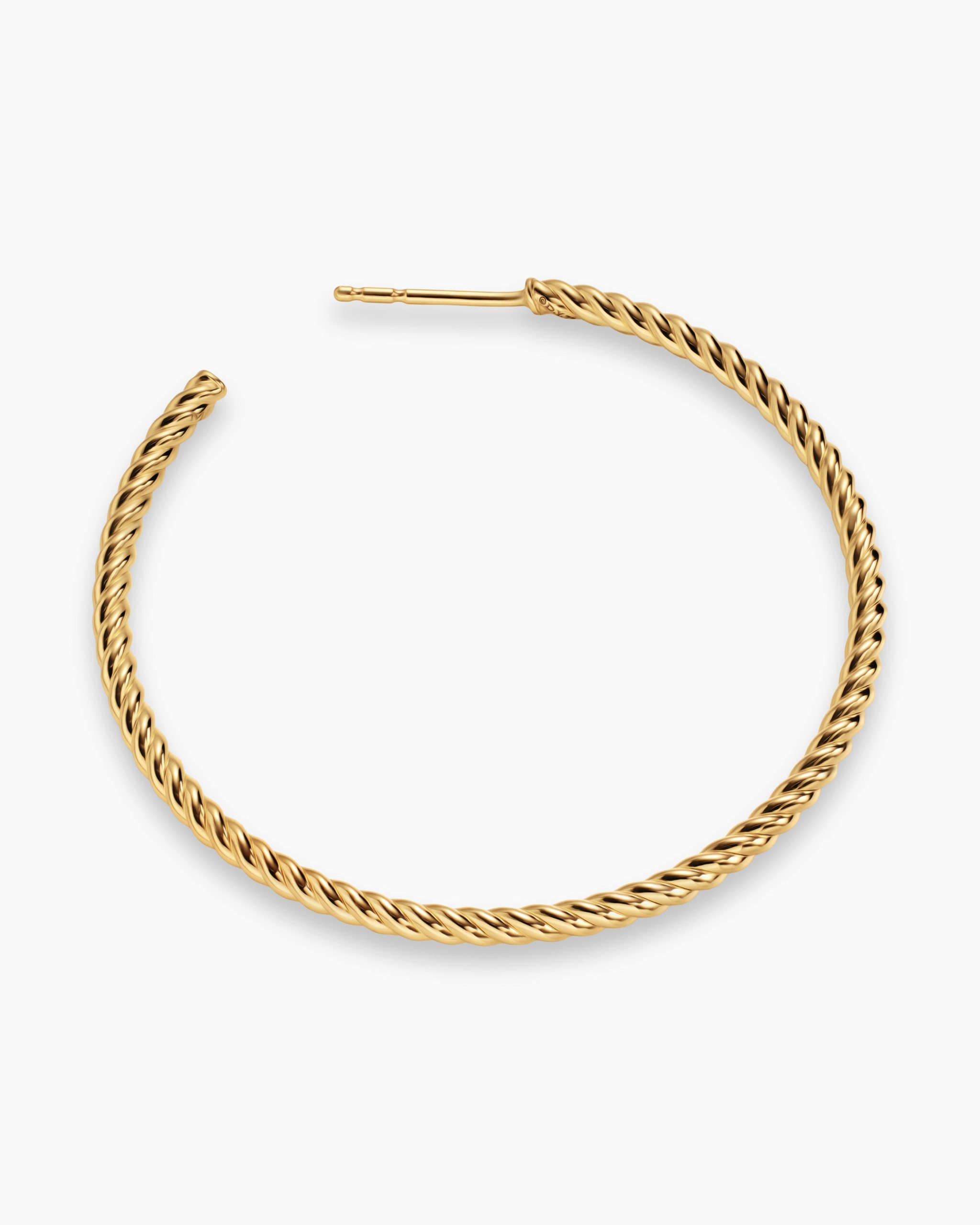 David Yurman’s artistic signature, Cable began as a bracelet that he hand-twisted from 50 feet of wire. For the past 30 years, he has evolved the twisted helix into a myriad of designs.18-karat yellow goldEarrings, 42.3 x 2.1mmCablespira® is a patented DY construction that is highly flexible and exceptionally comfortable to wear.