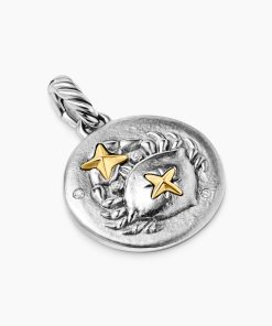 Charms and Amulets add a new layer of collectability–one that is about personalization, meaning and self-expression. The designs can be worn individually on a chain, in multiples, or added to a charm bracelet. Sterling silver with 18-karat yellow goldDiamonds, 0.02 total carat weightAmulet, 19 x 19mmTotal length, 28.2mmAmulet only; chain not included.This item can be engraved. Please contact customer care for more information.Functioning bail allows amulet to attach to a necklace or bracelet.