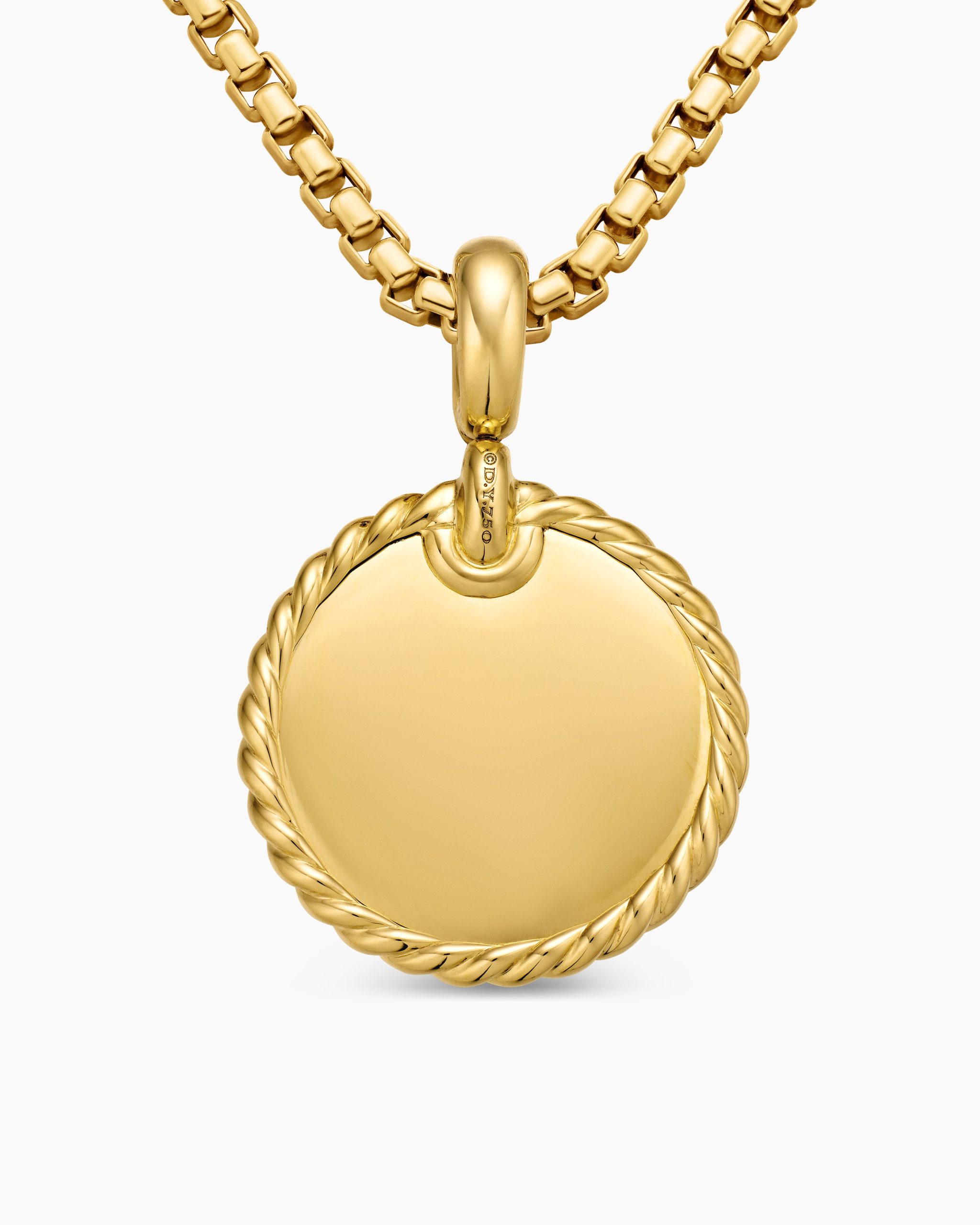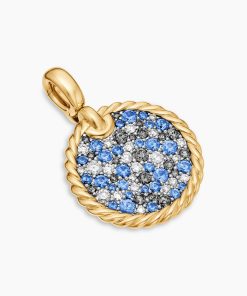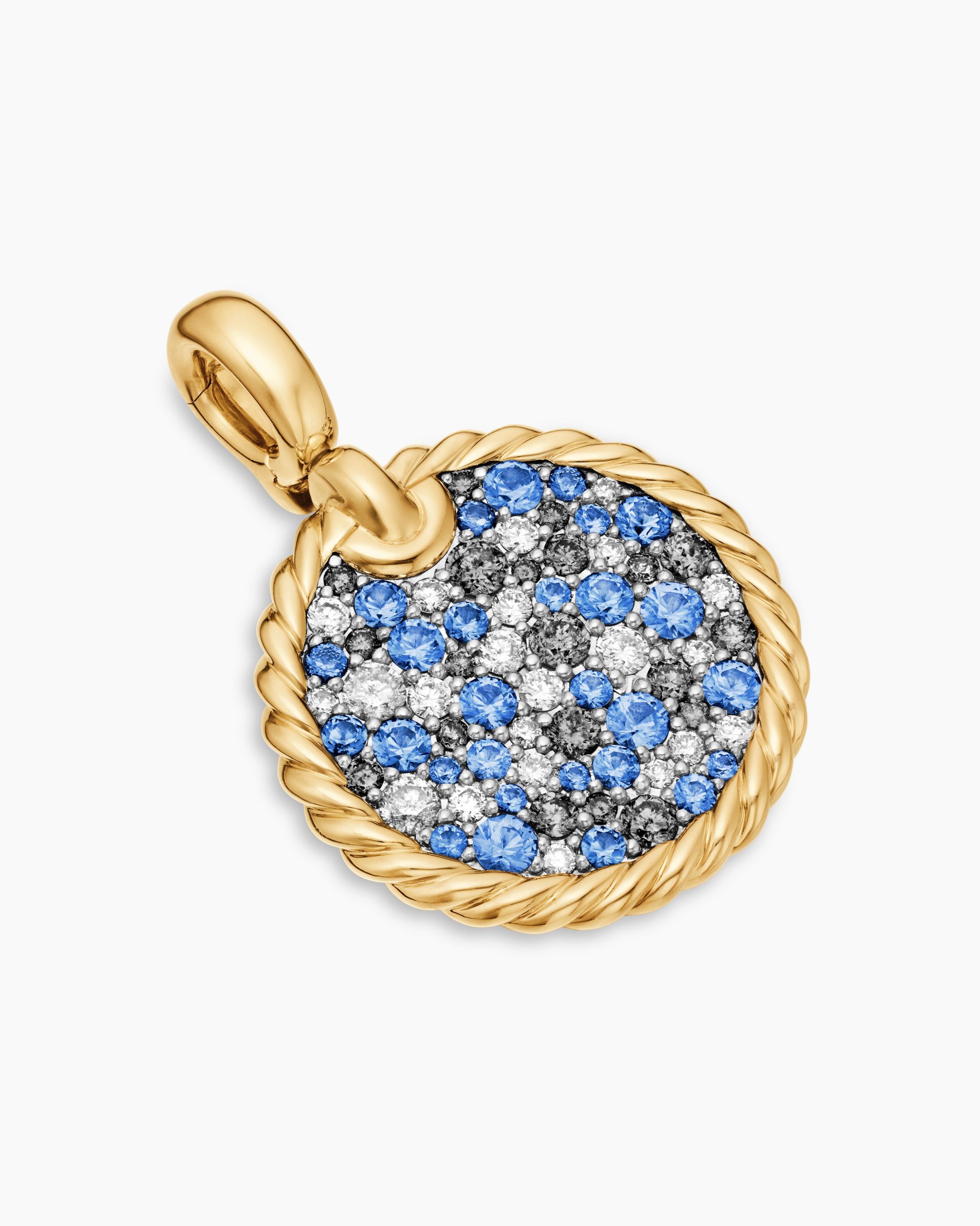 In this collection, David Yurman explores the circle—a timeless symbol of unity, a shape without beginning or end. 18-karat yellow goldPavé blue sapphires, 0.91 total carat weightPavé diamonds, 0.78 total carat weightPendant, 30.5 x 21.2mmFunctioning bail allows pendant to attach to a necklace or bracelet.Please note: pendant only; chain sold separatelyShown with: Box ChainThis item can be engraved. Please contact customer care for more information.