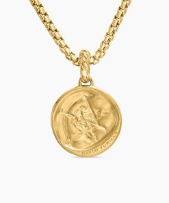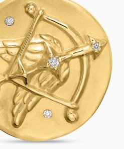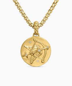 SAGITTARIUSnNovember 22–December 21nSymbol: ArchernOptimistic, magnetic, spontaneousnn nnnt18-karat yellow goldntDiamonds, 0.03 total carat weightntAmulet, 28.7 x 18.8mmntFunctioning bail allows pendant to attach to a necklace or bracelet.ntPlease note: amulet only; chain sold separately.ntShown with: Box Chainn
