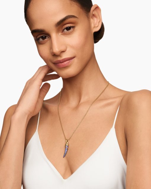 Charms and Amulets add a new layer of collectability–one that is about personalization, meaning and self-expression. The designs can be worn individually on a chain, in multiples, or added to a charm bracelet. 18-karat yellow goldPavé blue sapphires and violet blue sapphires, 1.64 total carat weightAmulet, 28.8 x 6.5mmFunctioning bail allows pendant to attach to a necklace or bracelet.Please note: amulet only; chain sold separatelyShown with: Box ChainThis item can be engraved. Please contact customer care for more information.