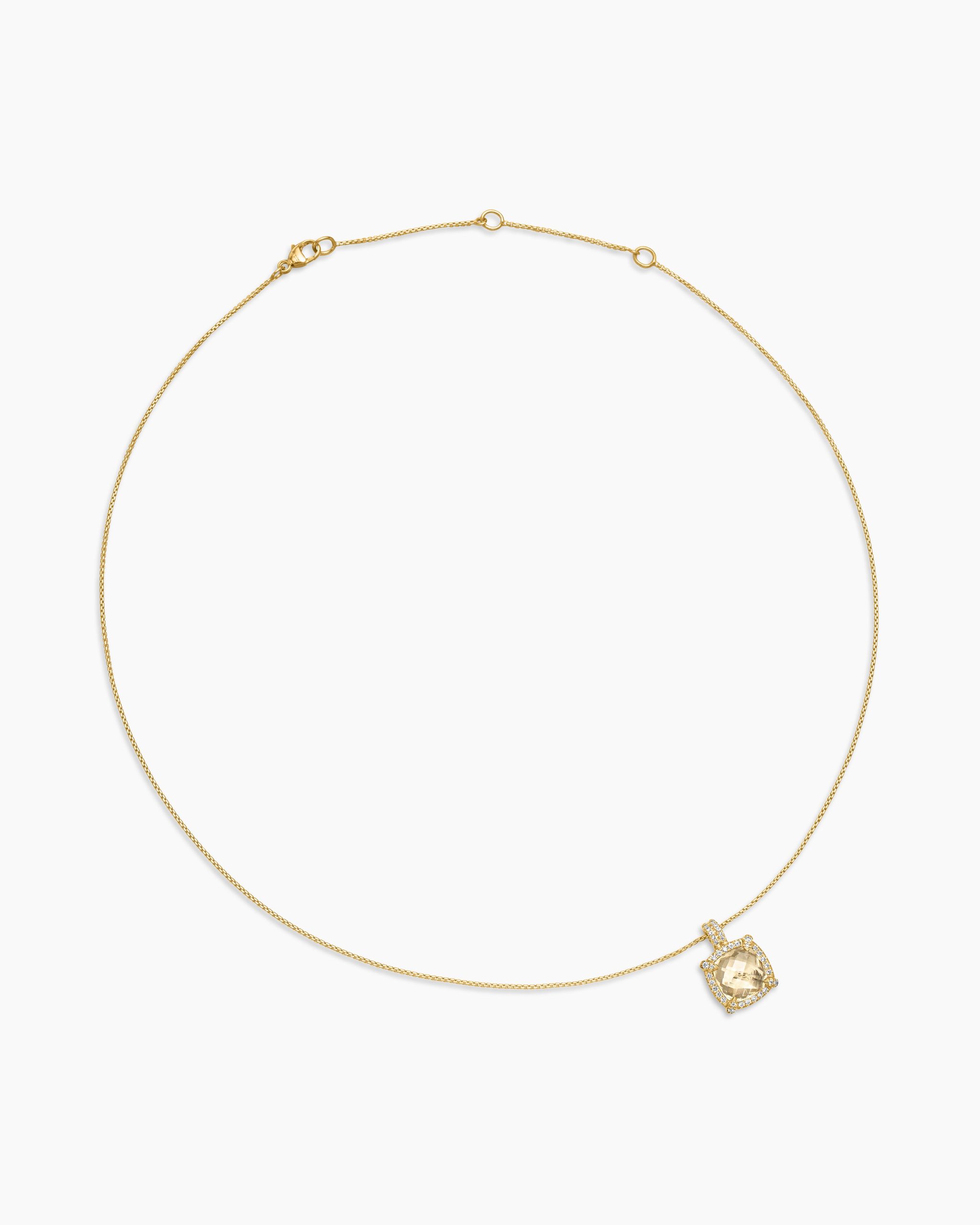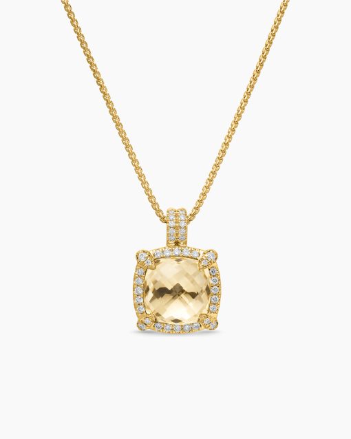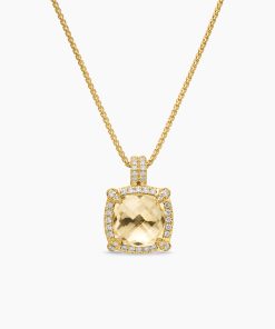 The Châtelaine® Collection is a perfect fusion of David and Sybil Yurman’s combined art—the marriage of a sculptor and a painter—form and color. 18-karat yellow goldChampagne citrine, 2.75 total carat weightStone, 9mmPavé diamonds, 0.18 total carat weightAdjustable length, 17-18inPendant, 12.1mmChain, 1.0mmLobster claspFunctioning bail allows pendant to attach to a necklace or bracelet.