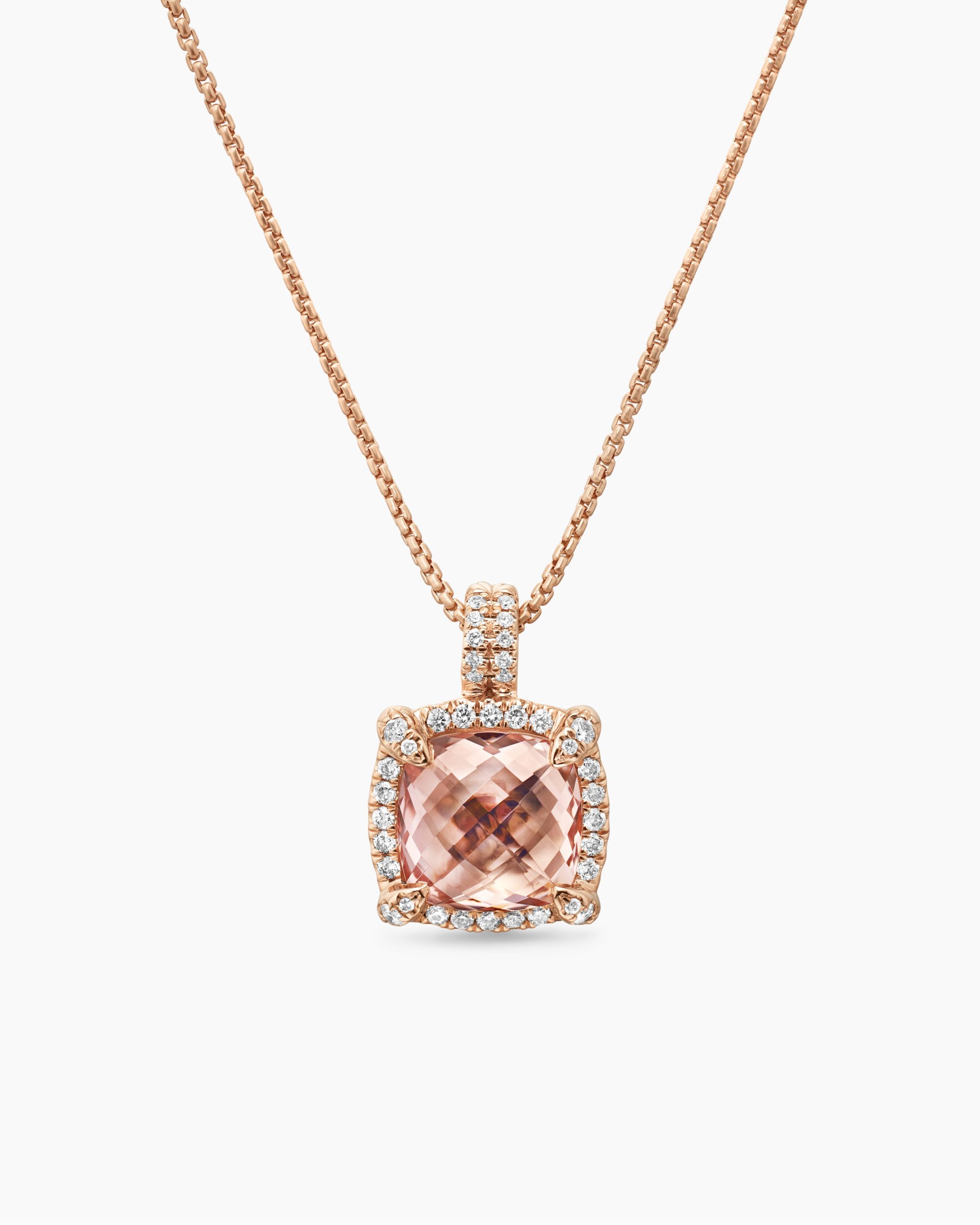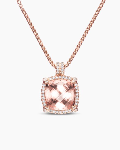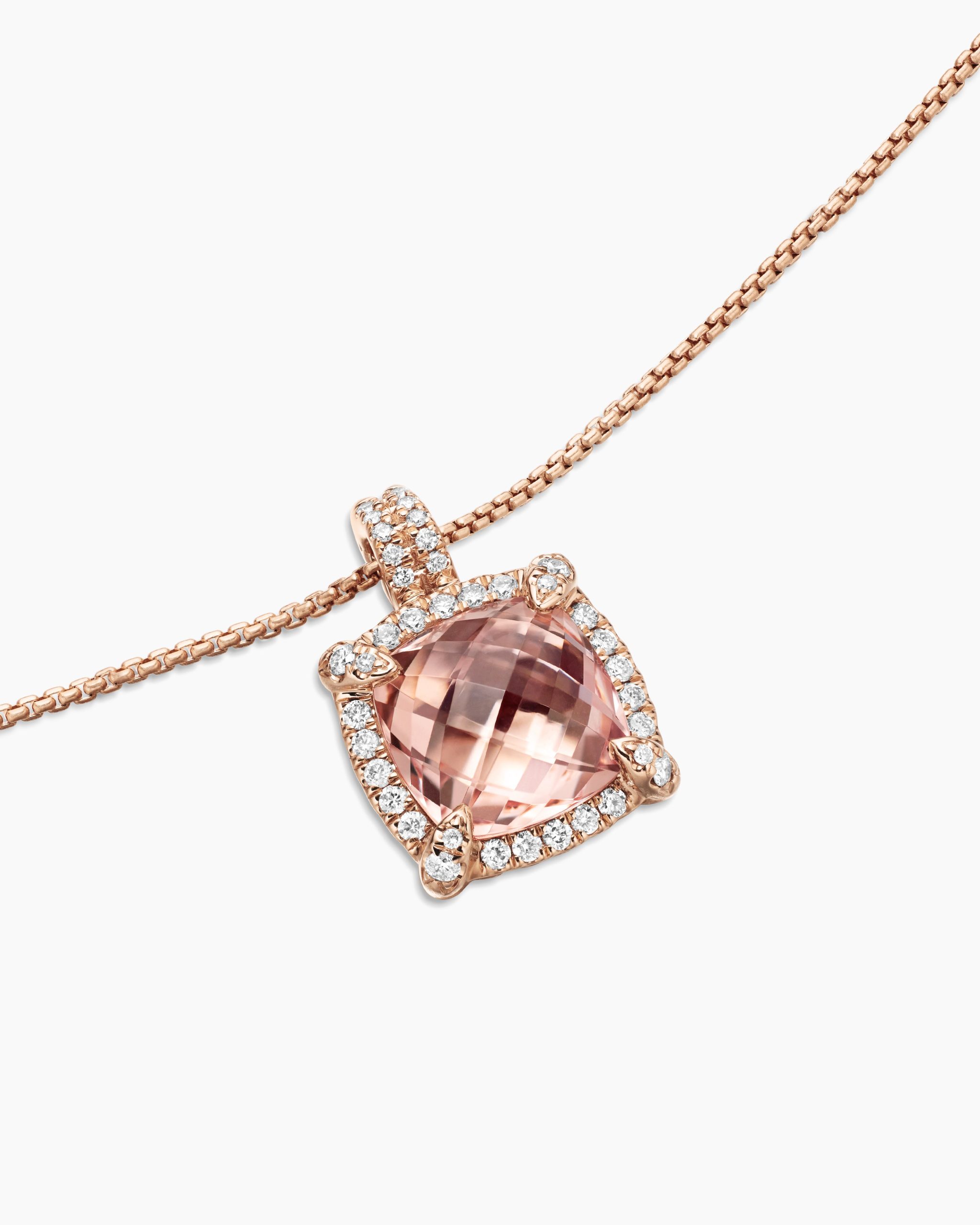 The Châtelaine® Collection is a perfect fusion of David and Sybil Yurman’s combined art—the marriage of a sculptor and a painter—form and color. 18-karat rose goldMorganite, 9.70 total carat weightStone, 14mmPavé-set diamonds, 0.39 total carat weightAdjustable length, 17-18inChain, 1.7mmPendant, 17.2mmLobster claspThis item can be resized. Please contact customer care for more information.Functioning bail allows pendant to attach to a necklace or bracelet.